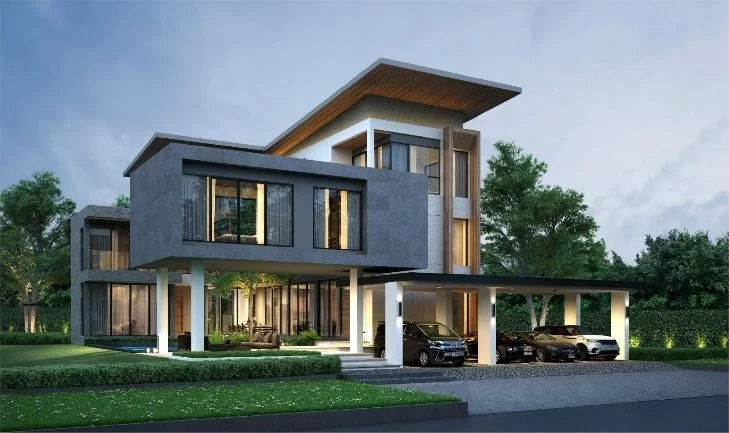 บ้านที่สะท้อนนิยามของ “ ความหรูหราในความนิ่งสงบ ” ด้วยโทนเข้มที่ให้ความรู้สึกลึกลับและมั่นคงเส้นสายเรียบขรึมตัดกับวัสดุธรรมชาติ สร้างเอกลักษณ์ให้ชีวิตของคุณแตกต่างอย่างมีรสนิยม เป็นสไตล์ Modern contemporary พื้นที่ภายในให้ความรู้สึกผ่อนคลายราวกับอยู่ในรีสอร์ตส่วนตัว