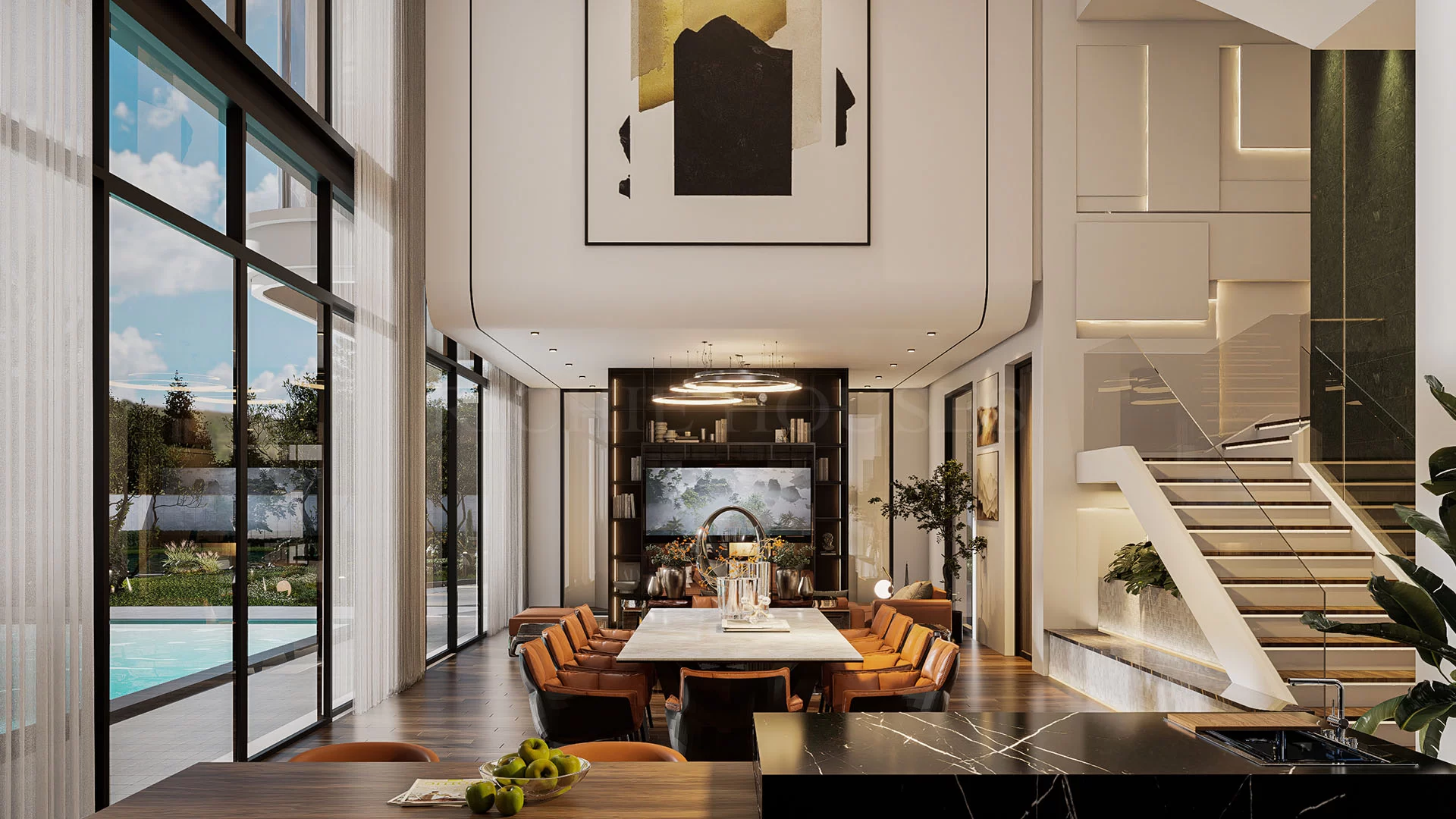 บ้านหรูสไตล์โมเดิร์นคลาสสิค หรูหราด้วยเอกลักษณ์ลายโรมัน ในลายเส้นของแนวตั้งและแนวโค้ง โถงทางเข้าโอ่อ่าด้วยดีไซน์ Double Volume สะท้อนไลฟ์สไตล์ที่มีระดับและทันสมัย ผสานความสุนทรียภาพในการอยู่อาศัยได้อย่างลงตัว
