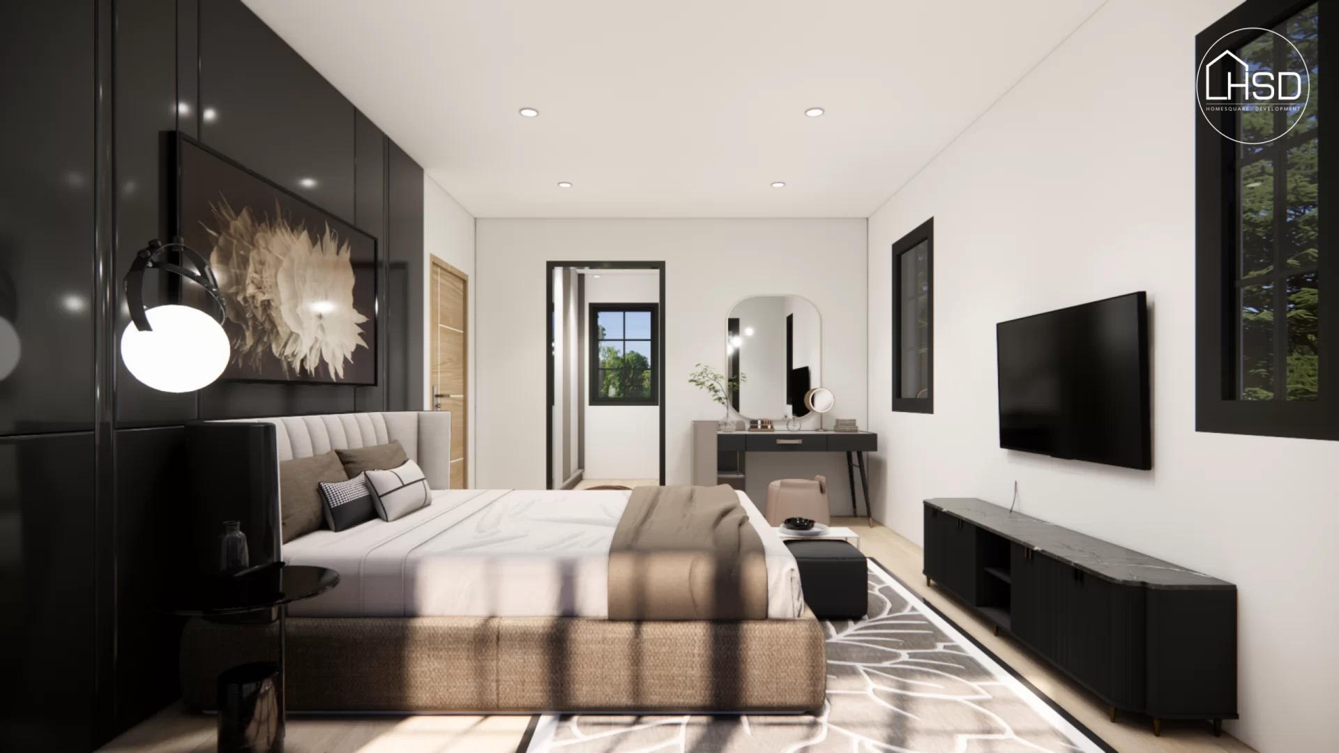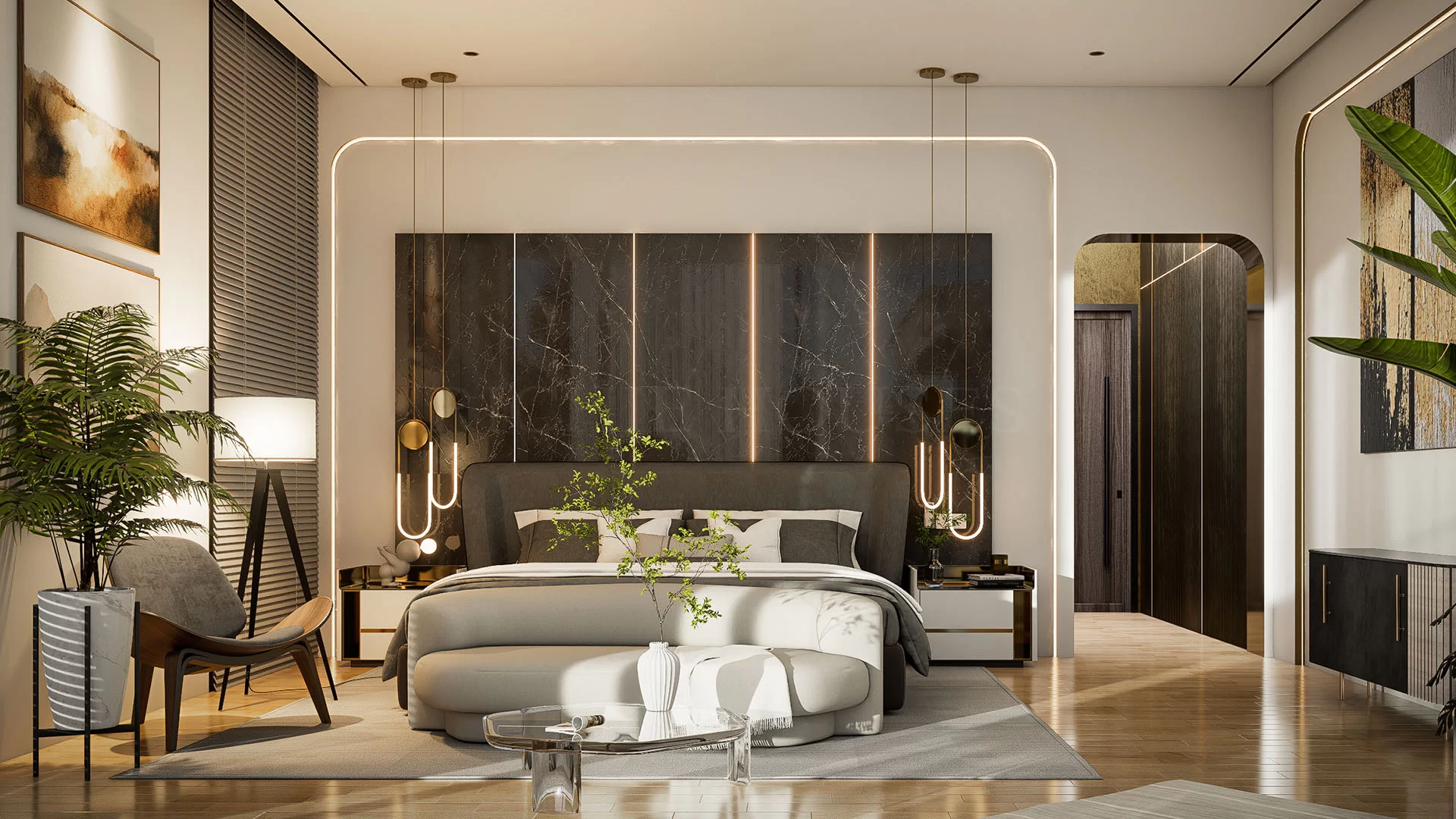 ด้วยการผสมผสานระหว่างความร่วมสมัยกับงานคลาสสิคที่สง่างามอย่างลงตัวทำให้บ้านหลังนี้มีความพิเศษกว่าใคร โดยเฉพาะโถงทางเข้าที่เปิดโล่งและห้องรับแขกรูปทรงกลม ที่สร้างความน่าสนใจให้กับผู้มาเยือนได้เป็นอย่างดี ห้องนอนชั้นล่าง 2 ห้องที่สามารถปรับเปลี่ยนห้องใดห้องหนึ่งเป็นห้องทำงานเล็กๆ ได้อย่างเพียงพอ ในส่วนของห้องนอนใหญ่มีการจัดพื้นที่สำหรับพักผ่อนและส่วนนอน ซึ่งออกแบบให้มีระดับความสูงของฝ้าเพดานให้สูงโปร่งโล่ง นอกจากนั้นยังเพิ่มจุดเด่นด้วยระเบียงโค้งขนาดใหญ่เป็นส่วนหนึ่งของมุมพักผ่อนพิเศษในบ้าน