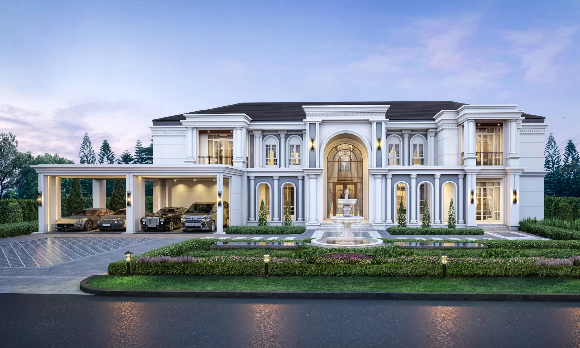ความสง่างามของสถาปัตยกรรมคลาสสิค ถูกนำมาผสานกับความร่วมสมัยทำให้เกิดแบบบ้านที่สวยงาม ดูภูมิฐาน เน้นรายละเอียดของงานบัวปูนปั้นโดยรอบอาคาร รวมถึงโดมที่สวยงามทำให้บ้านหลังนี้พิเศษแตกต่างจากบ้านโดยทั่วไป บ่งบอกถึงความสำเร็จและความภาคภูมิใจของผู้เป็นเจ้าของ ได้เป็นอย่างดี