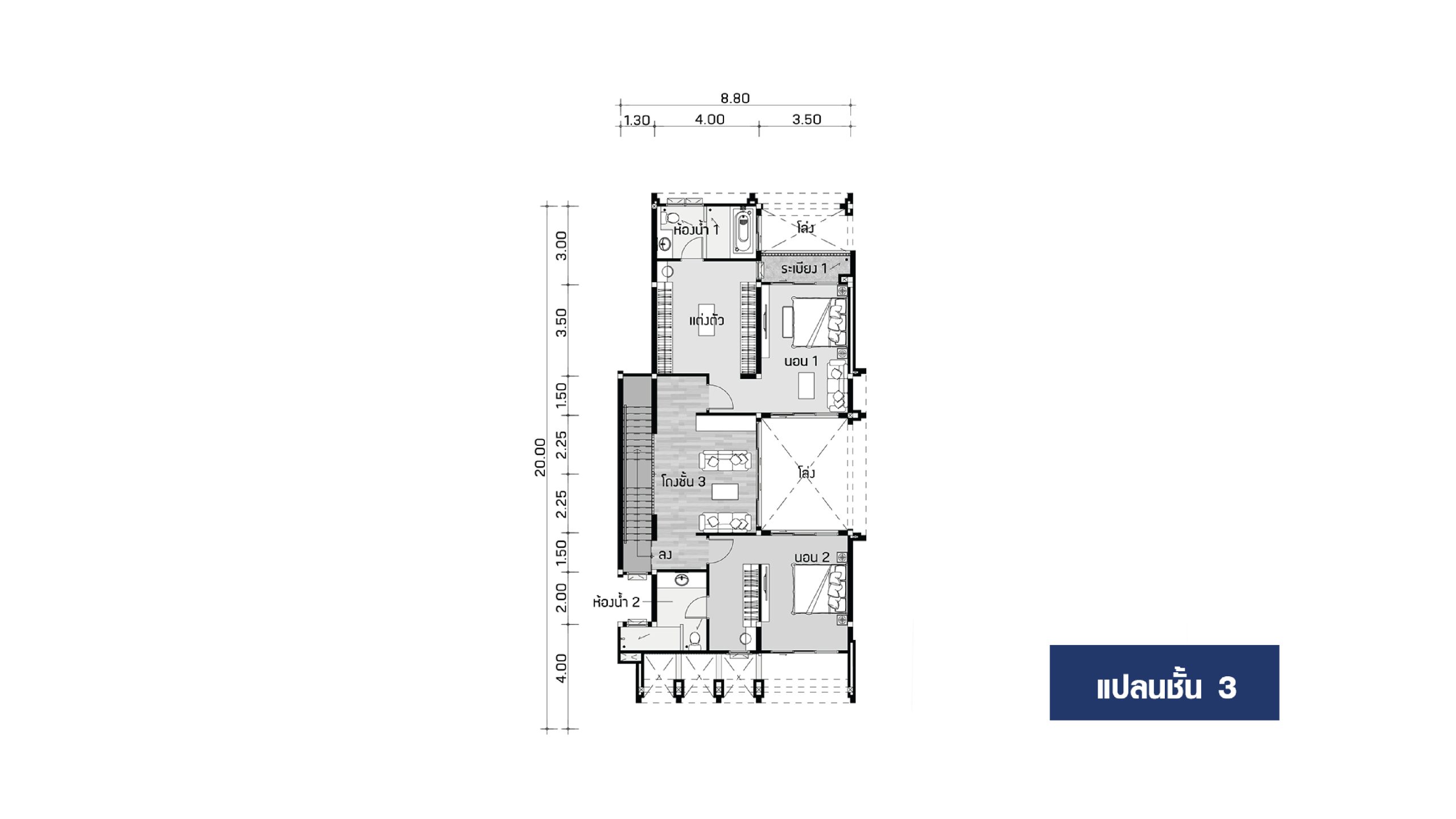 - 3 ห้องนอน