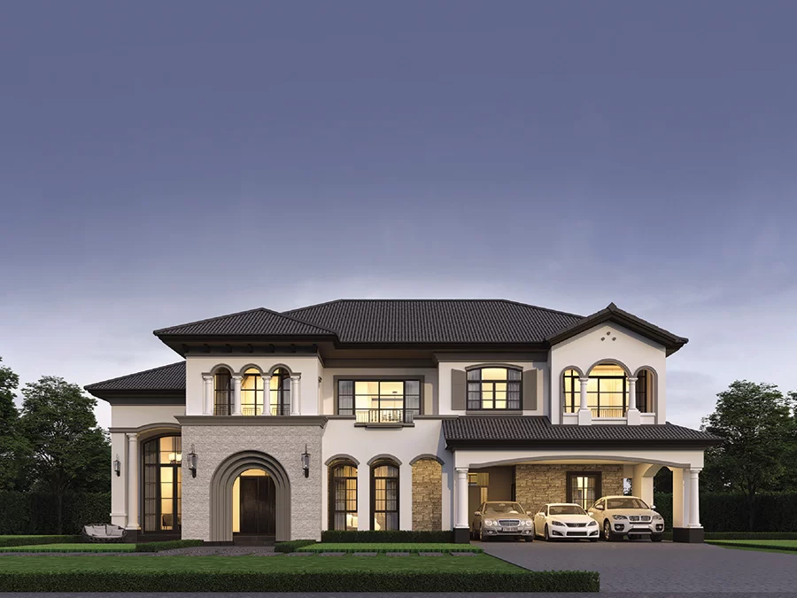 "ROBINSWOOD แบบบ้านสไตล์ Modern Classic โดดเด่นด้วยซุ้มโค้งและกรอบหน้าต่างสูง ช่วยเสริมภาพลักษณ์ความสง่างามและภูมิฐาน เหมาะสำหรับครอบครัวใหญ่ที่ต้องการให้บ้านสะท้อนความสำเร็จและรสนิยม พร้อมฟังก์ชันครบครันที่สามารถปรับเปลี่ยนได้ตามไลฟ์สไตล์ของผู้อยู่อาศัย"