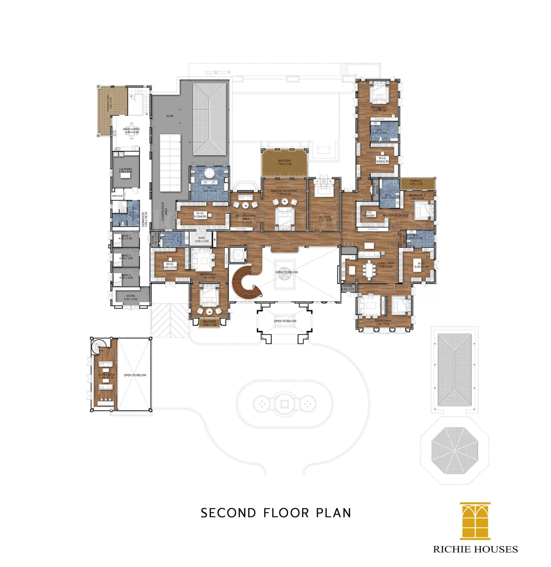 ด้วยการผสมผสานระหว่างความร่วมสมัยกับงานคลาสสิคที่สง่างามอย่างลงตัวทำให้บ้านหลังนี้มีความพิเศษกว่าใคร โดยเฉพาะโถงทางเข้าที่เปิดโล่งและห้องรับแขกรูปทรงกลม ที่สร้างความน่าสนใจให้กับผู้มาเยือนได้เป็นอย่างดี ห้องนอนชั้นล่าง 2 ห้องที่สามารถปรับเปลี่ยนห้องใดห้องหนึ่งเป็นห้องทำงานเล็กๆ ได้อย่างเพียงพอ ในส่วนของห้องนอนใหญ่มีการจัดพื้นที่สำหรับพักผ่อนและส่วนนอน ซึ่งออกแบบให้มีระดับความสูงของฝ้าเพดานให้สูงโปร่งโล่ง นอกจากนั้นยังเพิ่มจุดเด่นด้วยระเบียงโค้งขนาดใหญ่เป็นส่วนหนึ่งของมุมพักผ่อนพิเศษในบ้าน