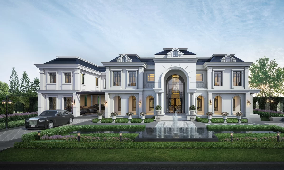 รูปแบบที่โดดเด่นแปลกตาในสไตล์งานคลาสสิคที่ผสมกลิ่นอายของสถาปัตยกรรมฝรั่งเศส ทำให้บ้านหลังนี้มีความหรูหรา อ่อนช้อย สง่างาม อย่างมีรสนิยม ทั้งยังใช้สื่อถึงความภาคภูมิใจในการเป็นเจ้าของได้เป็นอย่างดี ด้วยแปลนบ้านภายในยังสามารถตอบสนองความเป็นส่วนตัวและแยกส่วนรับรองแขกอย่างชัดเจน ในตัวบ้านยังมีส่วนที่เป็นพื้นที่เปิดโล่งถึง 3 จุด ทำให้บ้านดูโปร่งและสง่างามมากยิ่งขึ้น อีกทั้งโถงด้านหน้าขนาดใหญ่ที่สามารถรองรับการจัดงานที่มีแขกจำนวนมากได้เป็นอย่างดี ร่วมกับห้องจัดเลี้ยงขนาดใหญ่ที่สามารถรองรับแขก VIP ได้อีกด้วย