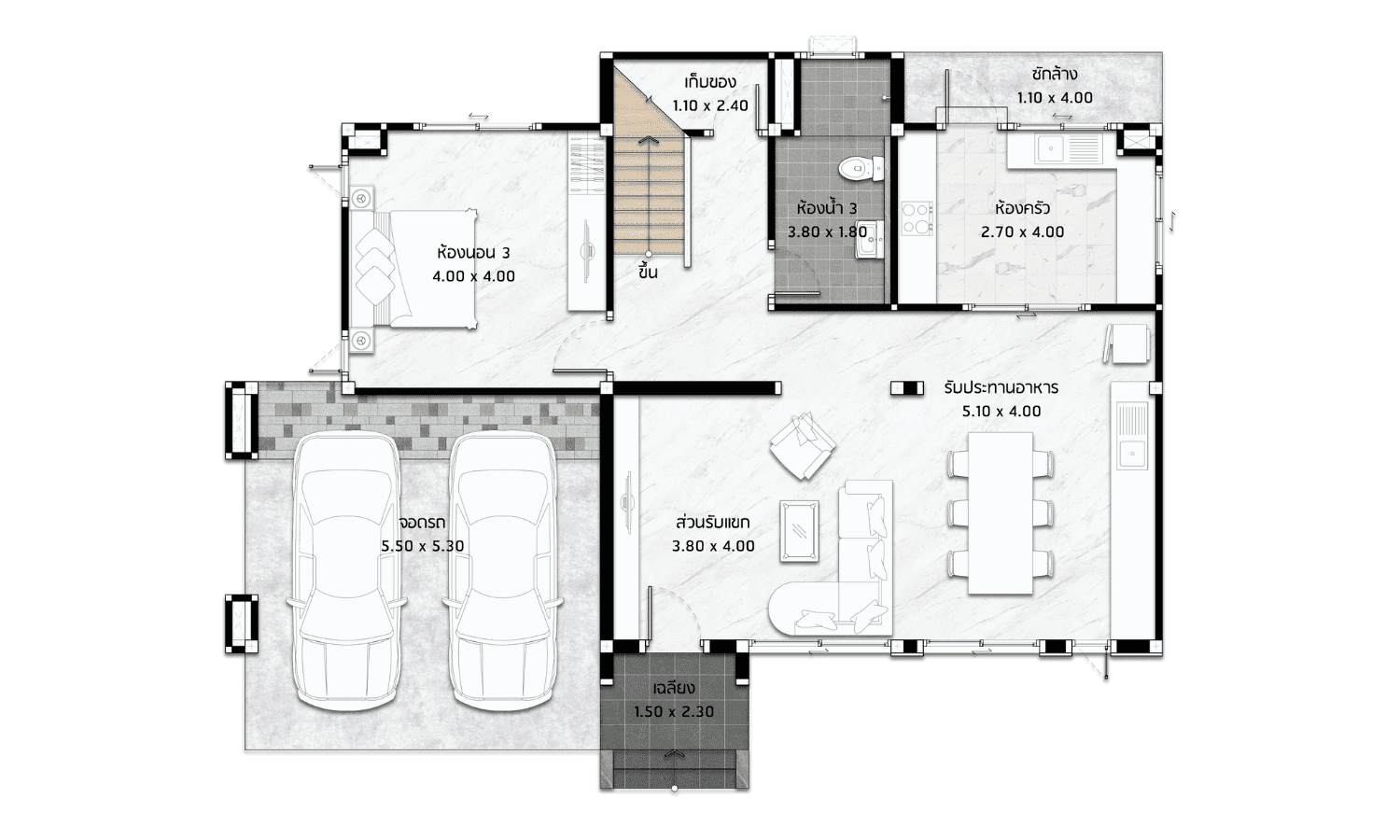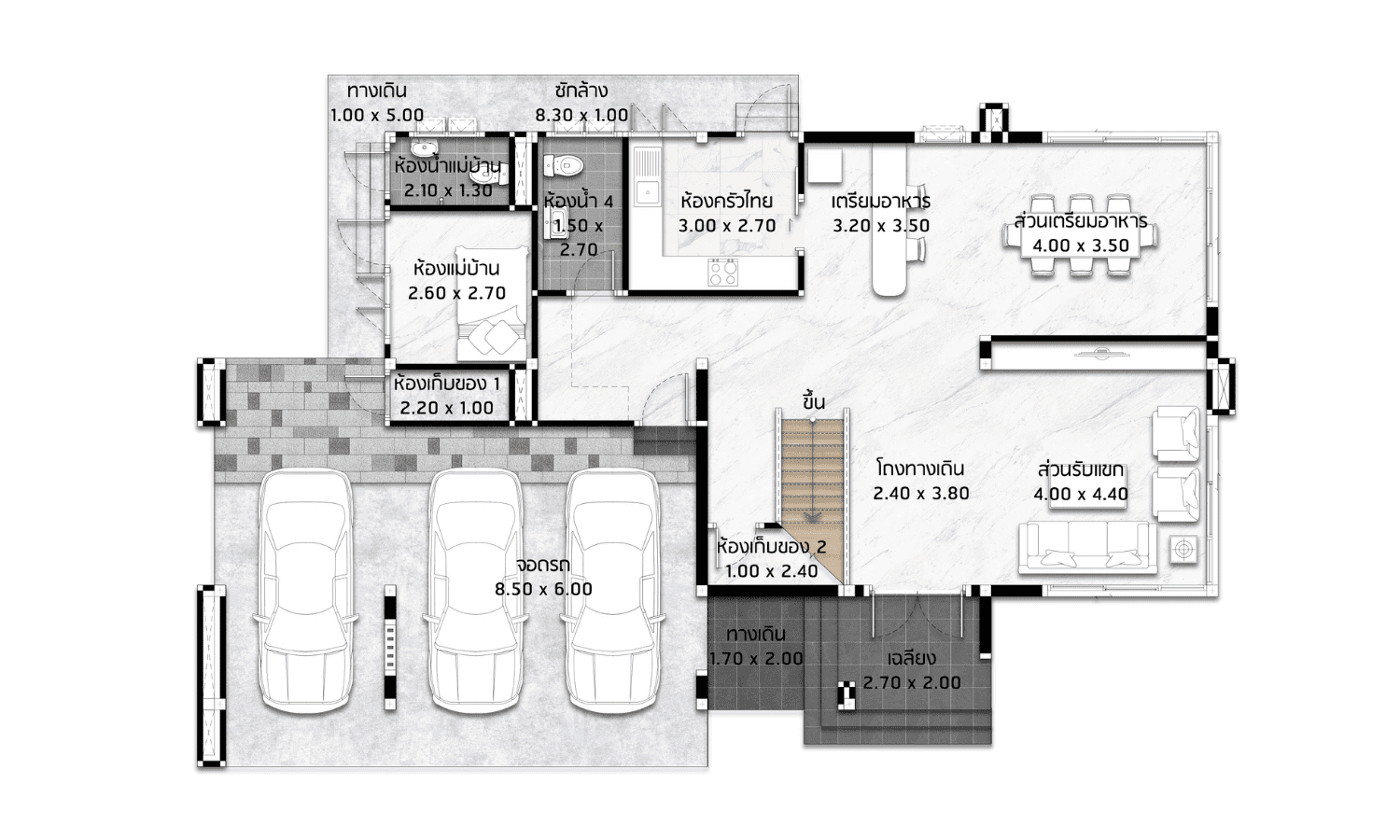 แบบบ้านสำหรับใครที่ชอบความหรูหรา ใหญ่โต Grand Royal 03 คือแบบบ้านที่จะตอบโจทย์ทุกความต้องการของคุณ ซึ่งแบบบ้านเหลังนี้หมาะสำหรับครอบครัวขนาดใหญ่ เพราะด้วยการออกแบบที่โดดเด่น ให้มีพื้นที่ถึง 3 ชั้น โดยเพดานของชั้น 1 และ 2 มีการออกแบบให้เป็น Double space ที่สามารถทะลุผ่านถึงกันได้ ทำให้ตัวบ้านดูสูง โปร่ง และตกแต่งแบบเรียบหรูในโทนสีครีม ที่ตัดด้วยบัวปูนปั้นสีขาว ให้มีกลิ่นอายแบบผู้ดีอังกฤษ