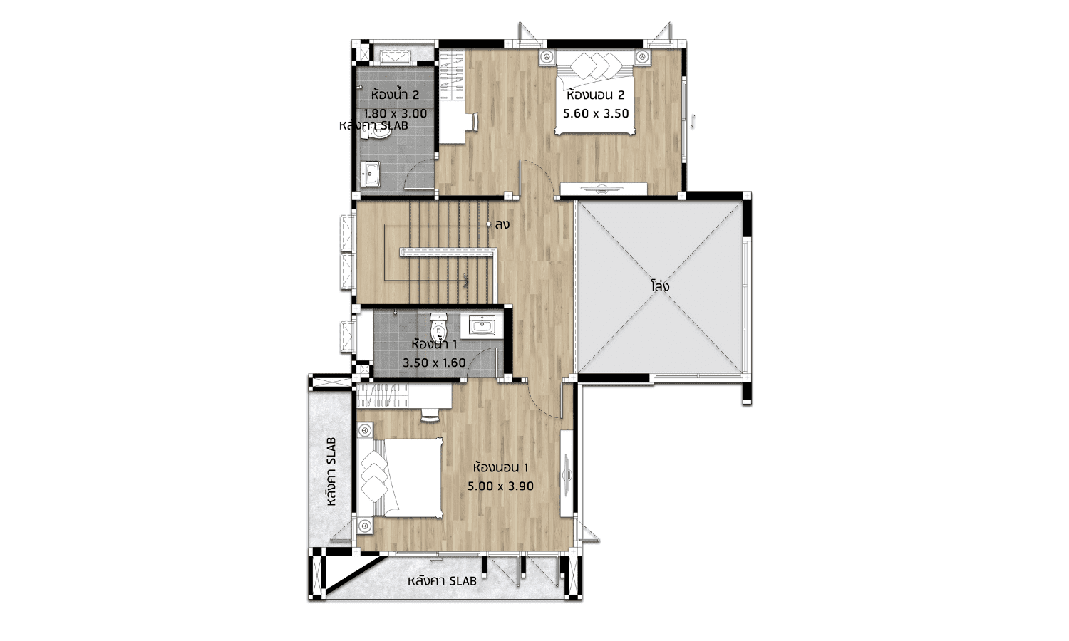 แบบบ้านหน้าแคบ 2 ชั้น สไตล์โมเดิร์น เน้นการใช้สอยพื้นที่อย่างลงตัวเพื่อให้เกิดประโยชน์สูงสุด ตกแต่งด้วยไม้สำเร็จรูป และคอนกรีตเปลือยเหมาะสำหรับครอบครัวสมัยใหม่ที่ต้องการบ้านขนาดกลางที่ครบครันและทันสมัย2