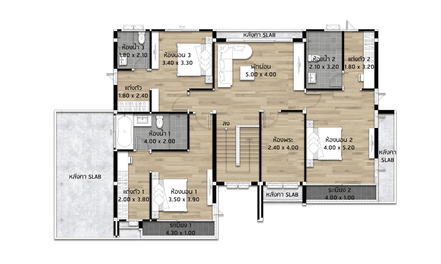 แบบบ้านหน้ากว้างสไตล์ทรอปิคอลโมเดิร์น เน้นความเรียบง่ายผสมผสานกับความทันสมัย ตกแต่งด้วยไม้สำเร็จรูปให้บรรยากาศอบอุ่น พร้อมด้วยการจัดพื้นที่ครบครันถึง 5 ห้องนอน โดยที่มีห้องนอนชั้นล่างสำหรับรองรับผู้สูงอายุในอนาคต เหมาะสำหรับครอบครัวขนาดใหญ่ ที่ต้องการให้สมาชิกในบ้านอยู่อาศัยร่วมกันในบรรยากาศอบอุ่นและการอยู่สบายของคนในครอบครัว