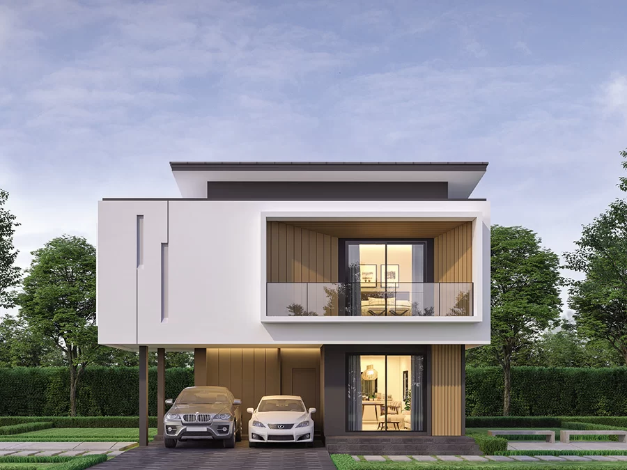 บ้านโมเดิร์นที่มีฟังก์ชันครบ มีหน้าต่างบานใหญ่มองออกไปเห็นทัศนียภาพภายนอกบ้านได้และเพื่อรับลมอีกด้วย ตัวบ้านทาสีขาวดูสวยสะอาดและทำให้บ้านดูอบอุ่น เหมาะสำหรับผู้ที่ชื่นชอบแบบบ้านสไตล์โมเดิร์น ได้มีแบบบ้านที่มีรูปทรงที่เป็นเอกลักษณ์ เน้นประโยชน์ใช้สอย และมีราคาที่สามารถเข้าถึงได้