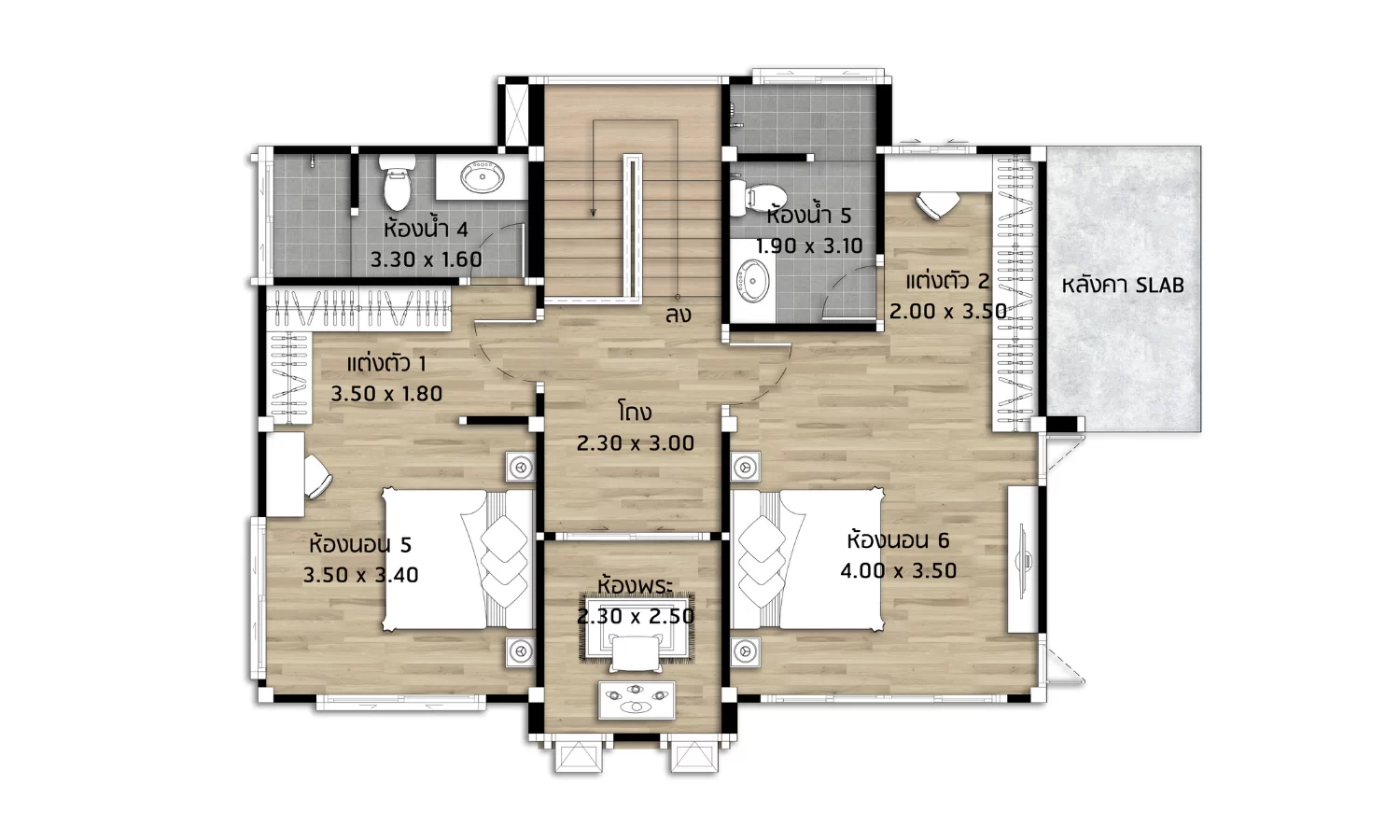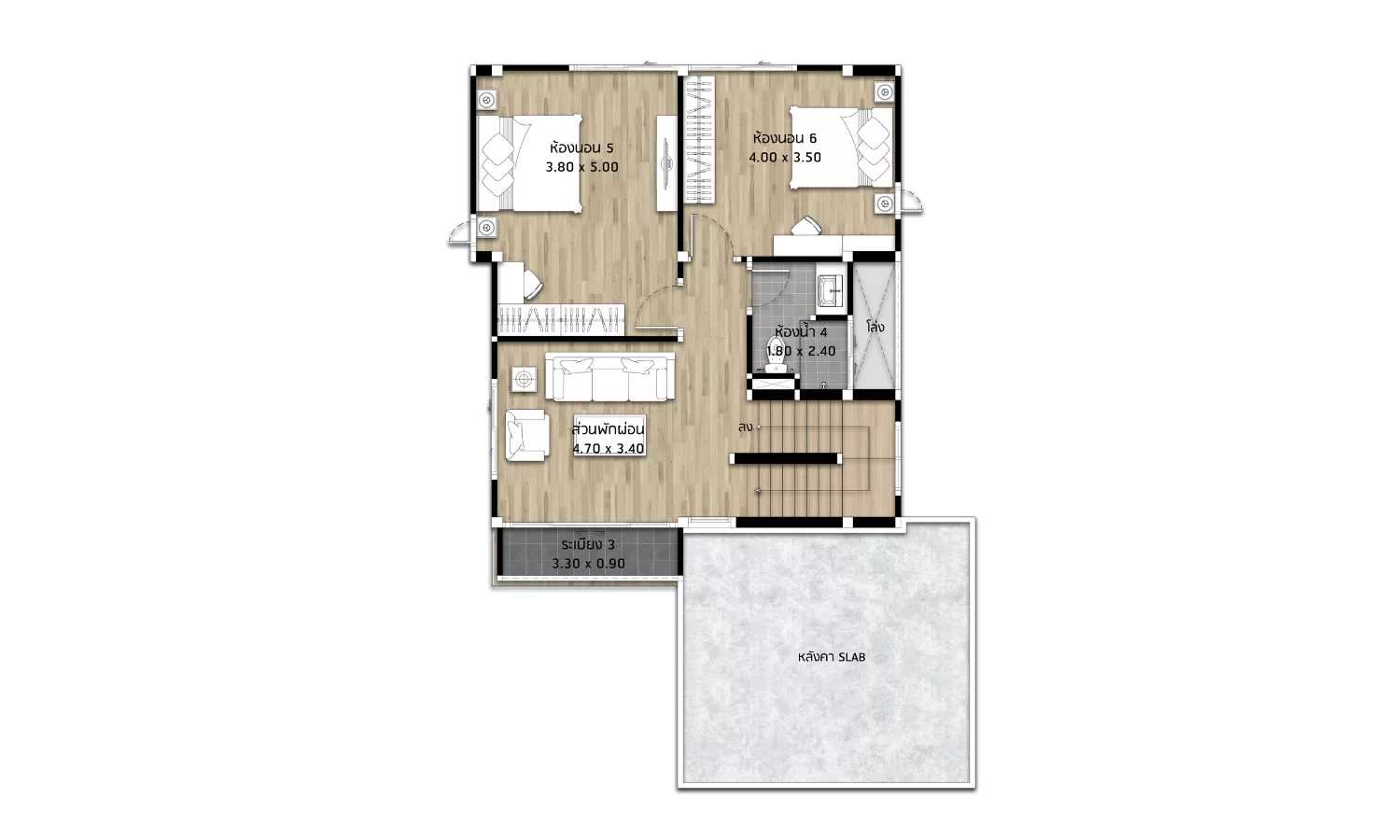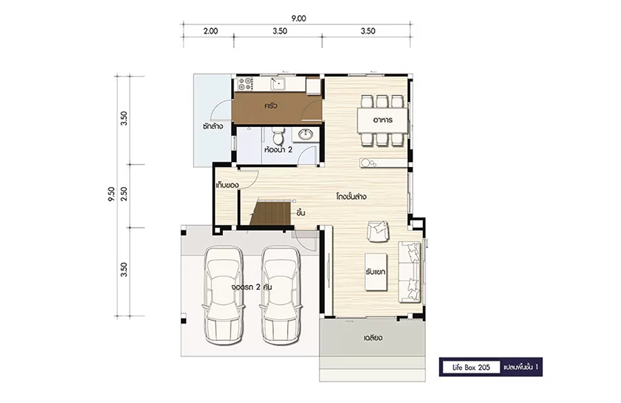 แบบบ้านหน้าแคบ 2 ชั้น สไตล์โมเดิร์น เน้นการใช้สอยพื้นที่อย่างลงตัวเพื่อให้เกิดประโยชน์สูงสุด ตกแต่งด้วยไม้สำเร็จรูป และคอนกรีตเปลือยเหมาะสำหรับครอบครัวสมัยใหม่ที่ต้องการบ้านขนาดกลางที่ครบครันและทันสมัย2