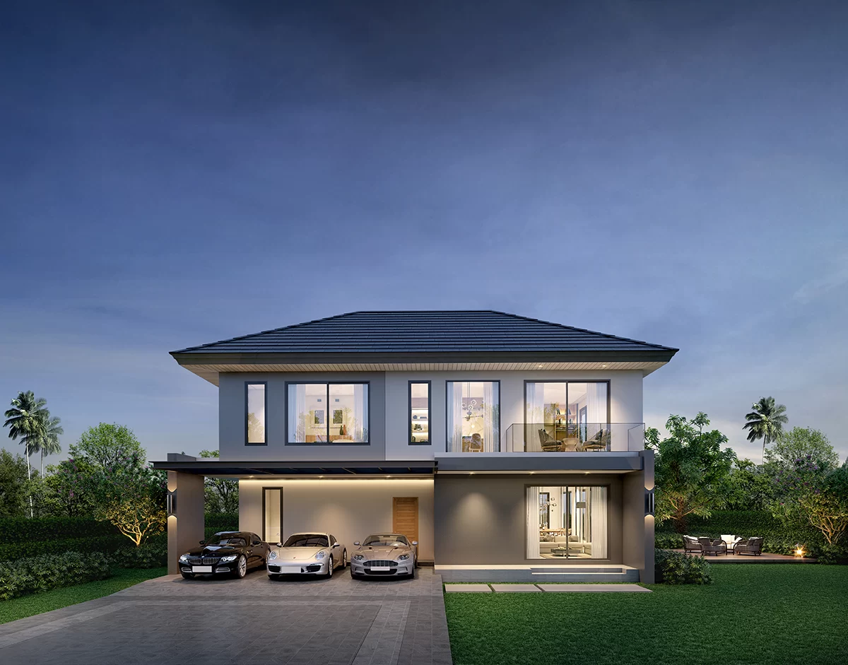 บ้านโมเดิร์นที่ตั้งใจออกแบบให้สอดคล้องกับภูมิอากาศของประเทศไทย มอบความร่มรื่น เย็นสบาย สูงสุดให้กับผู้อยู่อาศัย พร้อมกันนั้นยังได้ใกล้ชิดกับธรรมชาติมากยิ่งขึ้น ด้วยการวางตัวของอาคารที่ขนานไปกับสวนทั้งด้านหน้าและหลังบ้าน และทำให้ทุกห้องได้สัมผัสกับธรรมชาติอย่างเต็มที่ เพื่อให้ผู้อาศัยเริ่มตันทุกๆวันได้อย่างสดชื่น อย่างที่ไม่เคยได้สัมผัสมาก่อน