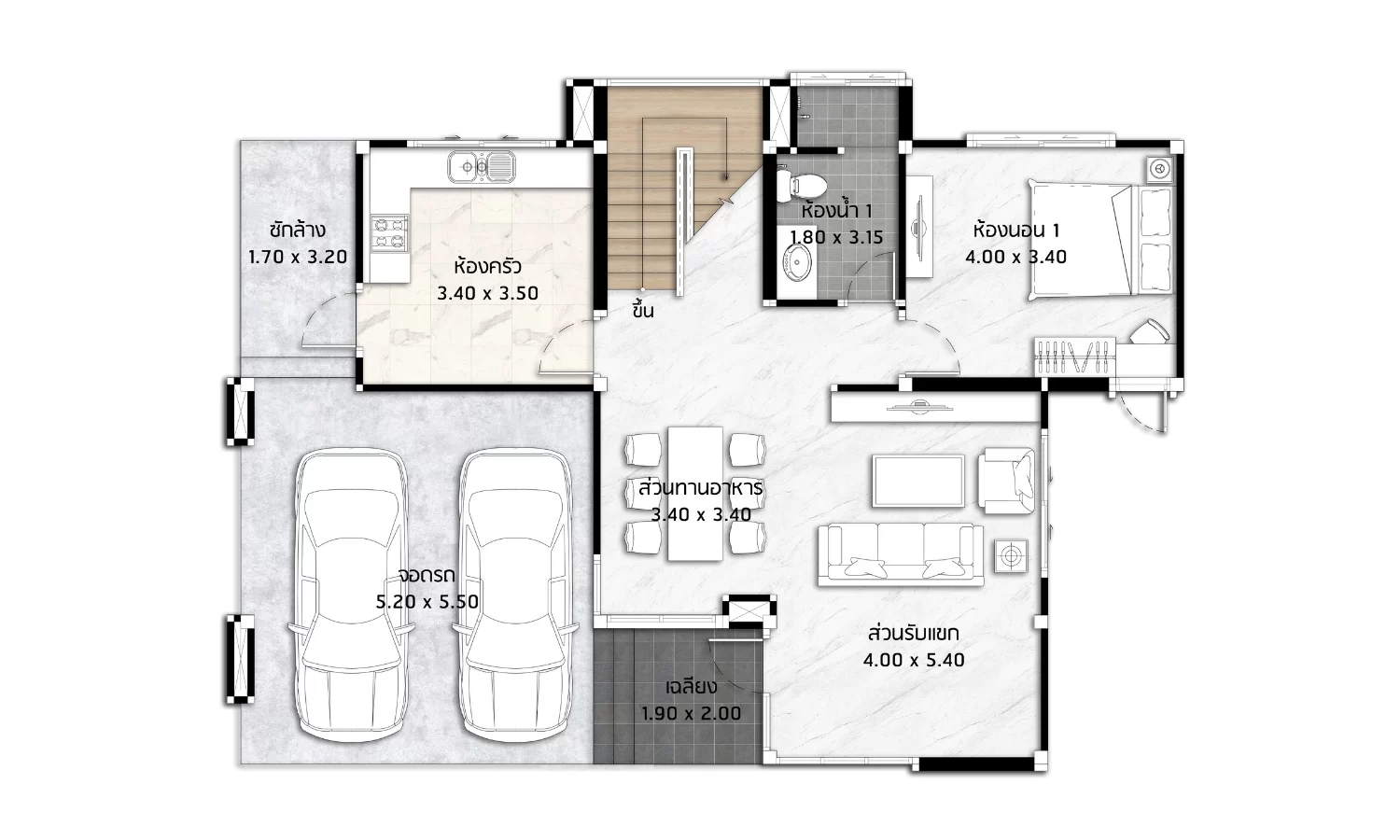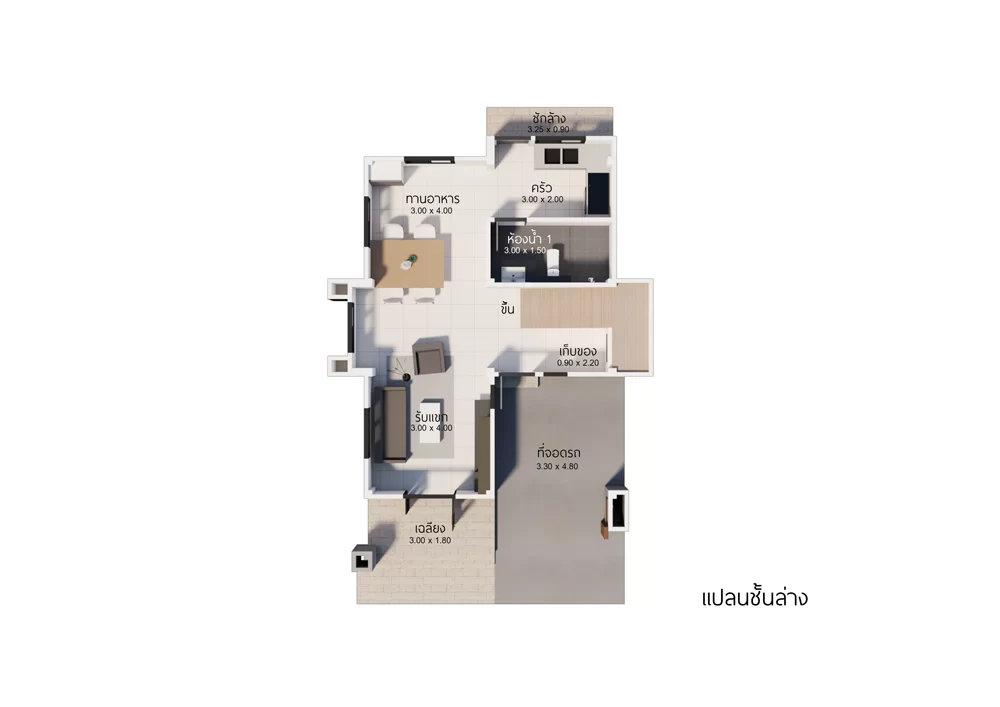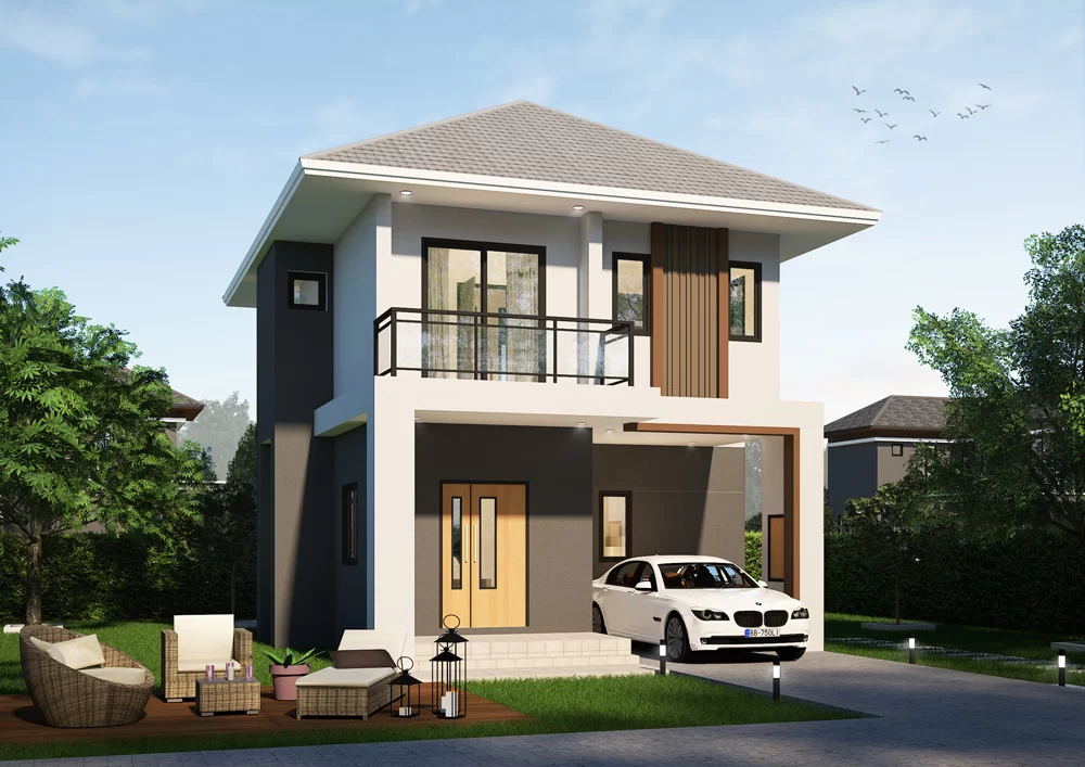 แบบบ้านที่มีรูปลักษณ์โมเดิร์น เรียบง่าย เหมาะกับผู้อาศัยที่มี Lifestyle ยุคใหม่ทันสมัย มีการใส่ลูกเล่นในการออกแบบ Texture & Line ของธรรมชาติลงไป เพื่อสร้างความน่าสนใจและลดทอนความเป็นโมเดิร์นลงให้กลมกลืน มี Function เพียงพอต่อการใช้สอย หรือจะปรับเปลี่ยนเป็น Home office ก็ยังได้