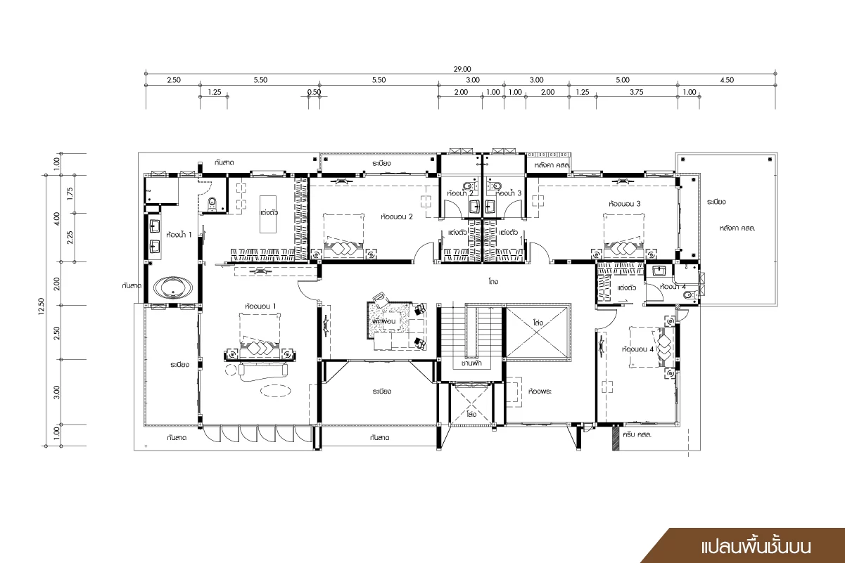 แบบบ้านสำหรับใครที่ชอบความหรูหรา ใหญ่โต Grand Royal 03 คือแบบบ้านที่จะตอบโจทย์ทุกความต้องการของคุณ ซึ่งแบบบ้านเหลังนี้หมาะสำหรับครอบครัวขนาดใหญ่ เพราะด้วยการออกแบบที่โดดเด่น ให้มีพื้นที่ถึง 3 ชั้น โดยเพดานของชั้น 1 และ 2 มีการออกแบบให้เป็น Double space ที่สามารถทะลุผ่านถึงกันได้ ทำให้ตัวบ้านดูสูง โปร่ง และตกแต่งแบบเรียบหรูในโทนสีครีม ที่ตัดด้วยบัวปูนปั้นสีขาว ให้มีกลิ่นอายแบบผู้ดีอังกฤษ