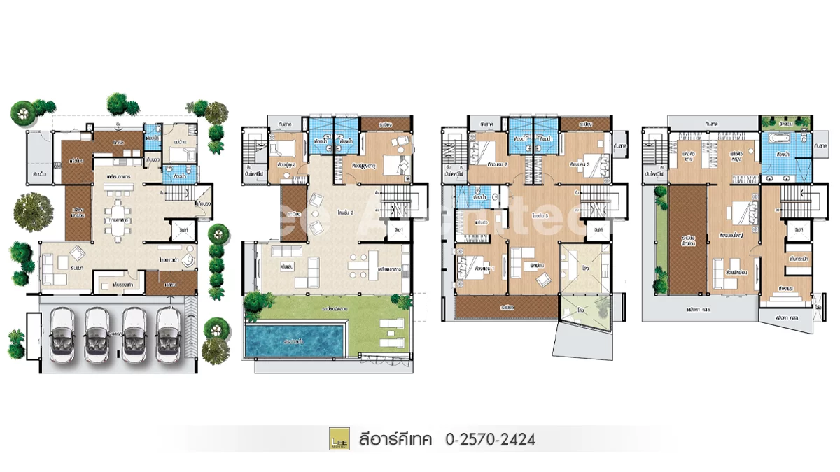 แบบบ้านสไตล์ Modern Luxury ส่วนประกอบของบ้าน ได้แก่ บ้าน 2 ชั้น 3 ห้องนอน 4 ห้องน้ำ จอดรถ 3 คัน สระว่ายน้ำ และส่วนบริการ