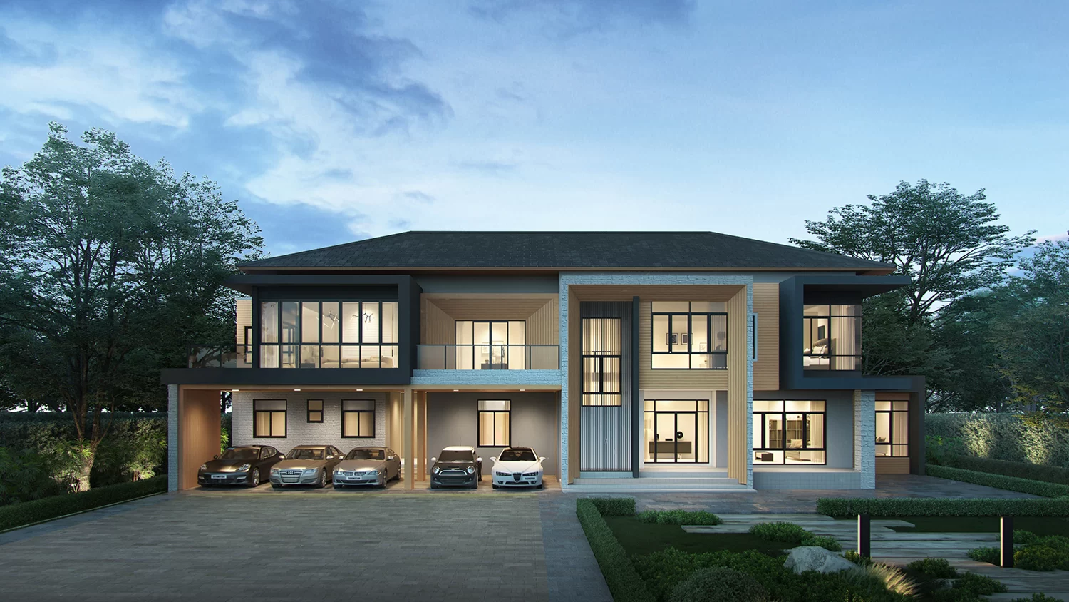 แบบบ้านที่มีรูปลักษณ์โมเดิร์น เรียบง่าย เหมาะกับผู้อาศัยที่มี Lifestyle ยุคใหม่ทันสมัย มีการใส่ลูกเล่นในการออกแบบ Texture & Line ของธรรมชาติลงไป เพื่อสร้างความน่าสนใจและลดทอนความเป็นโมเดิร์นลงให้กลมกลืน มี Function เพียงพอต่อการใช้สอยสำหรับครอบครัวขนาดใหญ่ หรือจะปรับเปลี่ยนเป็น Home office ก็ยังได้