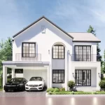 แบบบ้าน Modern English Style ให้ความรู้สึกหรูหรา สง่างาม ใช้โทนสีขาวและเทาตกแต่งด้วยลายหินธรรมชาติ มีกลิ่นอายของประเทศฝั่งตะวันตก ที่ผสมผสานความ Modern ได้อย่างลงตัว เหมาะกับบ้านที่มีขนาดที่ดินไม่กว้างมากนัก แต่ต้องการห้องจำนวนมาก สำหรับรองรับการใช้งานต่างๆ