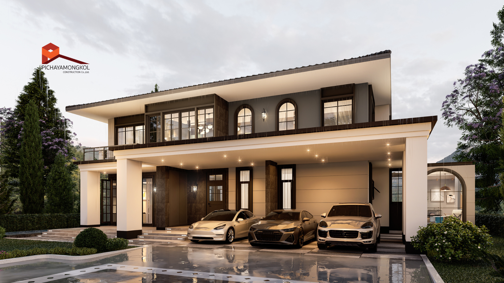 THE IMPERIAL l An Architecture of Power & Prestige THE IMPERIAL คือบ้านที่ออกแบบภายใต้แนวคิด “ความยิ่งใหญ่ที่ไม่ต้องอวด แต่สัมผัสได้ตั้งแต่แรกเห็น” สถาปัตยกรรมโดดเด่นด้วยฟอร์มสมมาตร เส้นสายที่หนักแน่น ผสานกลิ่นอาย Modern Luxury กับความหรูร่วมสมัย สะท้อนรสนิยมของผู้อยู่อาศัย ซุ้มประตูทางเข้าขนาดใหญ่ เสาสูงสง่า และช่องเปิดแนวตั้ง ช่วยสร้างมิติความโอ่อ่า ในขณะที่การจัดวางพื้นที่ภายในยังคงความโปร่ง โล่ง และใช้งานได้จริง