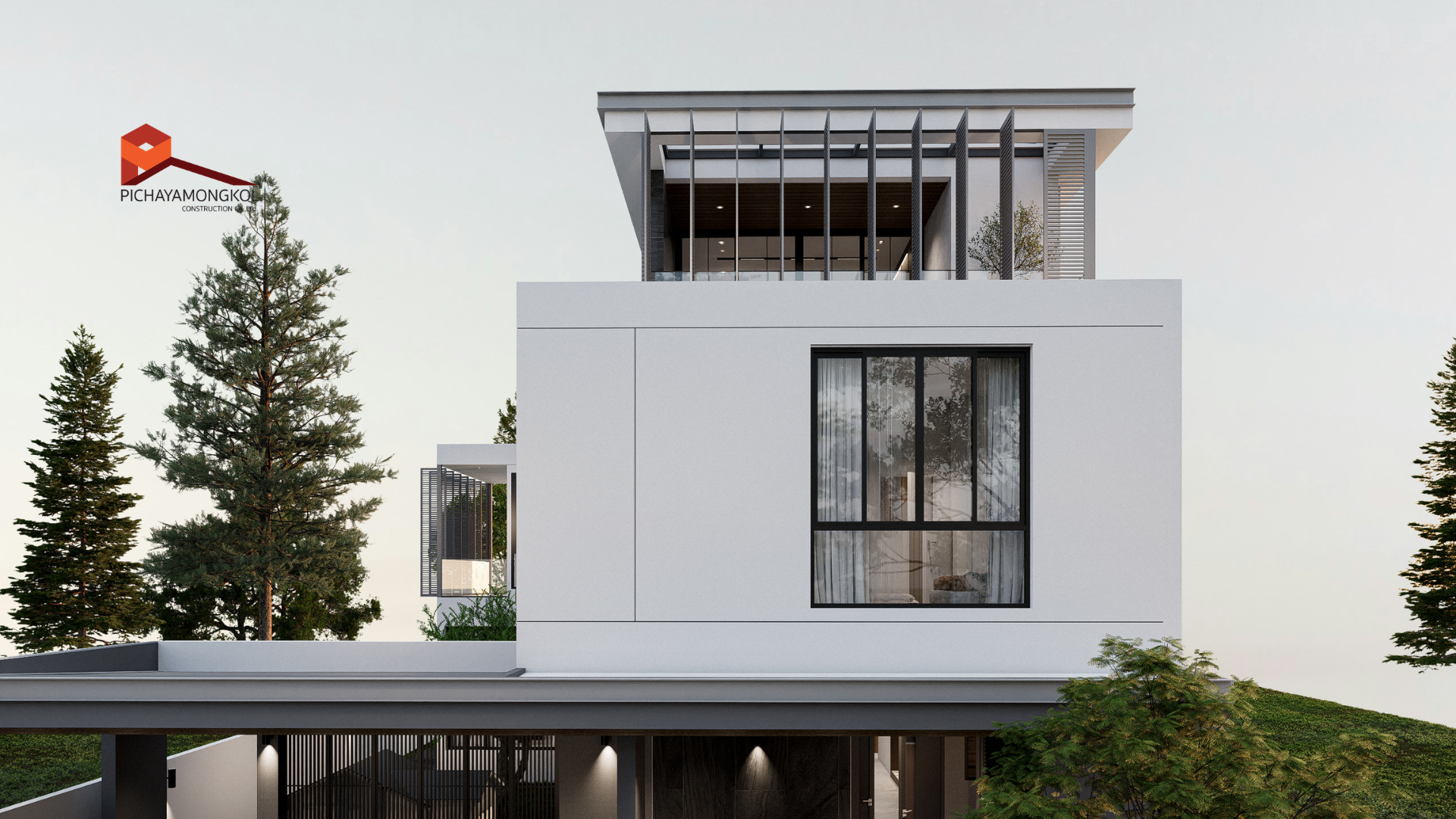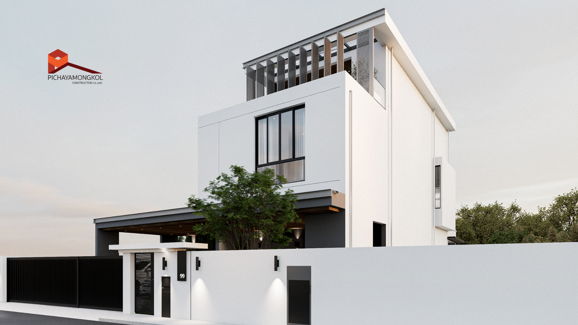 บ้านโมเดิร์น คอนเท็มโพรารี่ 2 ชั้น ตอบโจทย์ครอบครัวขนาดกลาง ที่ต้องการความหรูหรา สมฐานะ โดดเด่นด้วยโถงทางเข้า ที่เปิดโล่งสูง ถึงชั้น 2 และระเบียงภายในชั้น 2 ตกแต่งด้วยกระจกเทมเปอร์ยาวตลาดแนว ให้ความีู้สึกเรียบ หรู อย่างแท้จริง