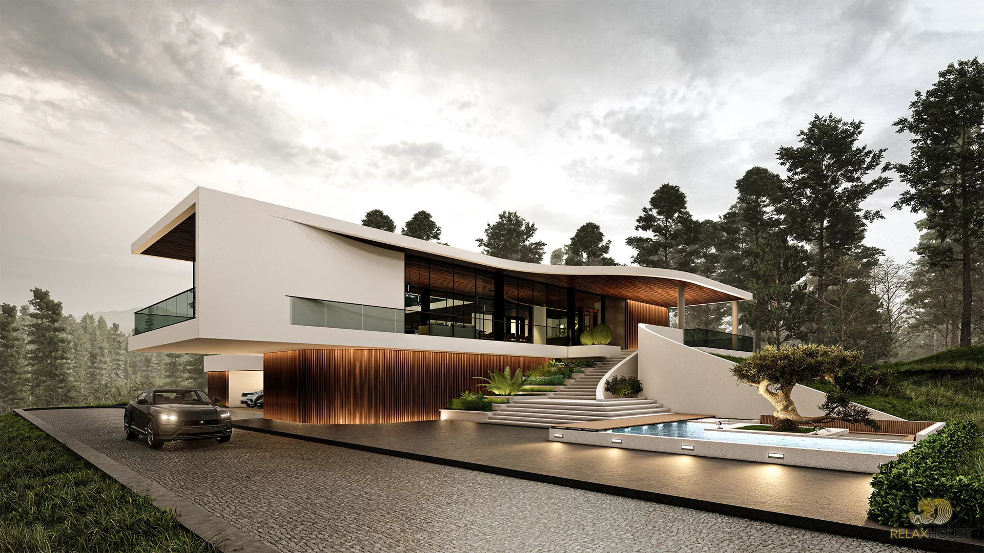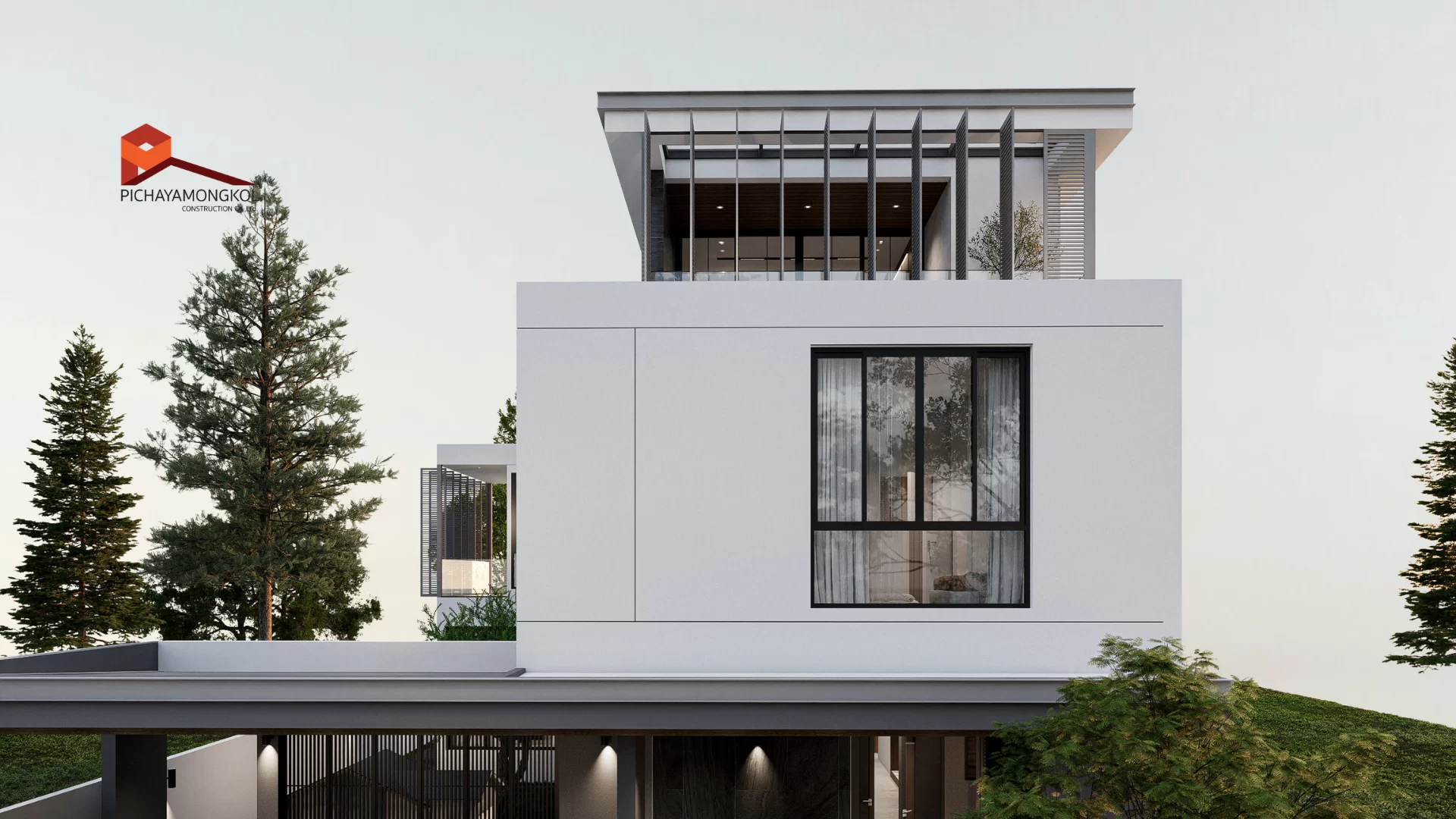 ตัวบ้านถูกออกแบบในสไตล์ Modern Contemporary ที่เน้นความทันสมัย เรียบง่าย เพิ่มมิติที่น่าสนใจด้วยระแนงไม้เลื่อน ช่วยบดบังสายตาจากผู้คนภายนอกเน้นให้ความสำคัญกับพื้นที่ส่วนตัวของครอบครัว เหมาะกับครอบครัวขนาดใหญ่
