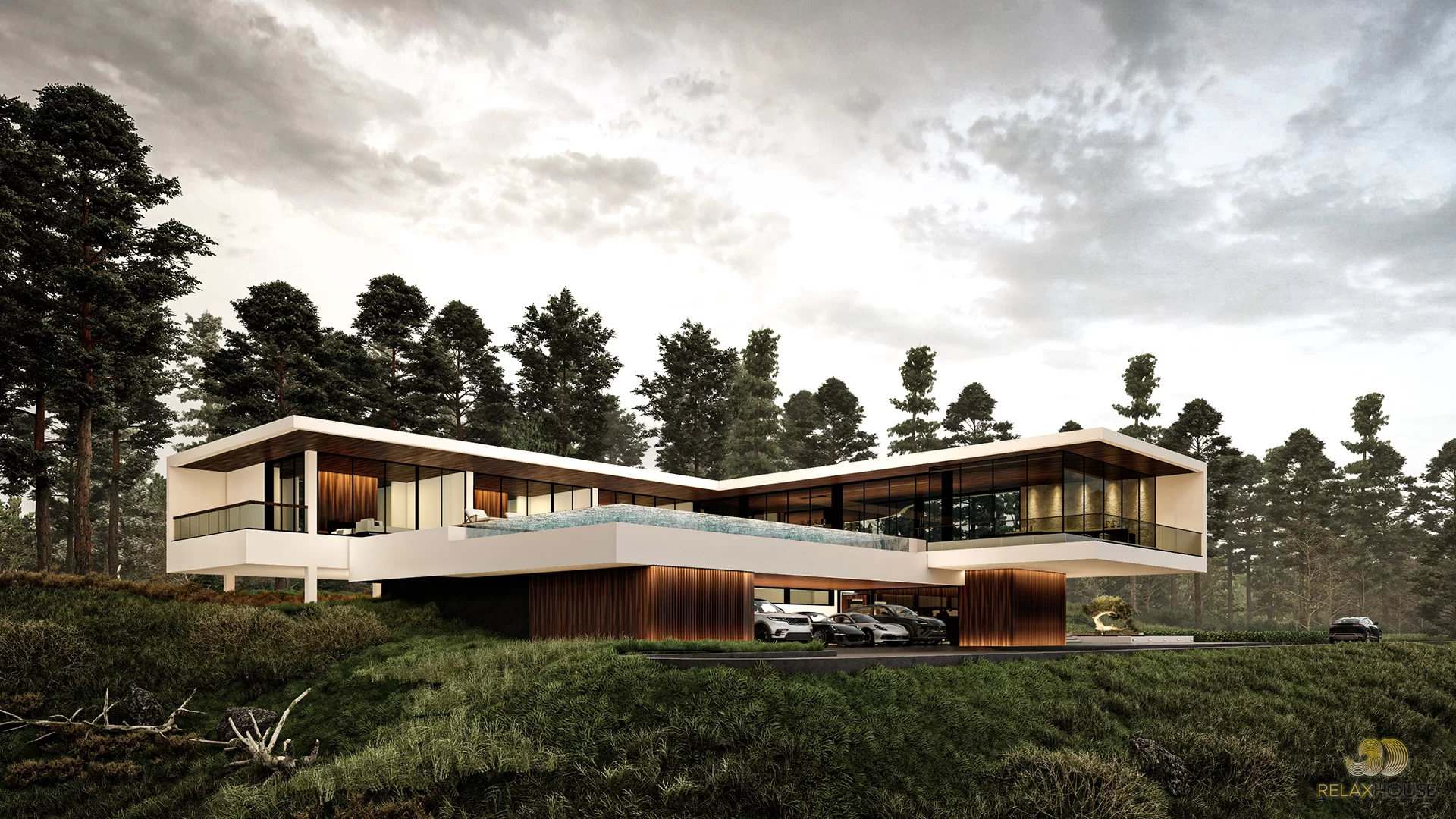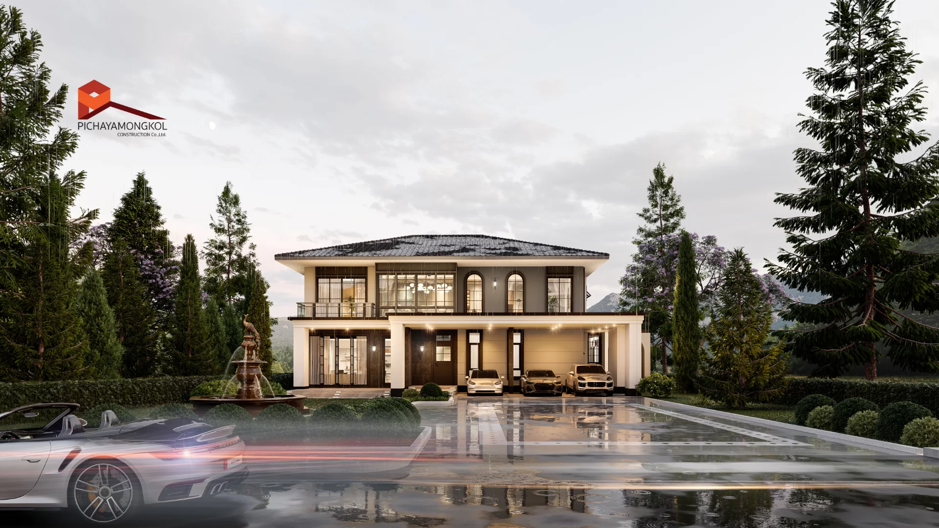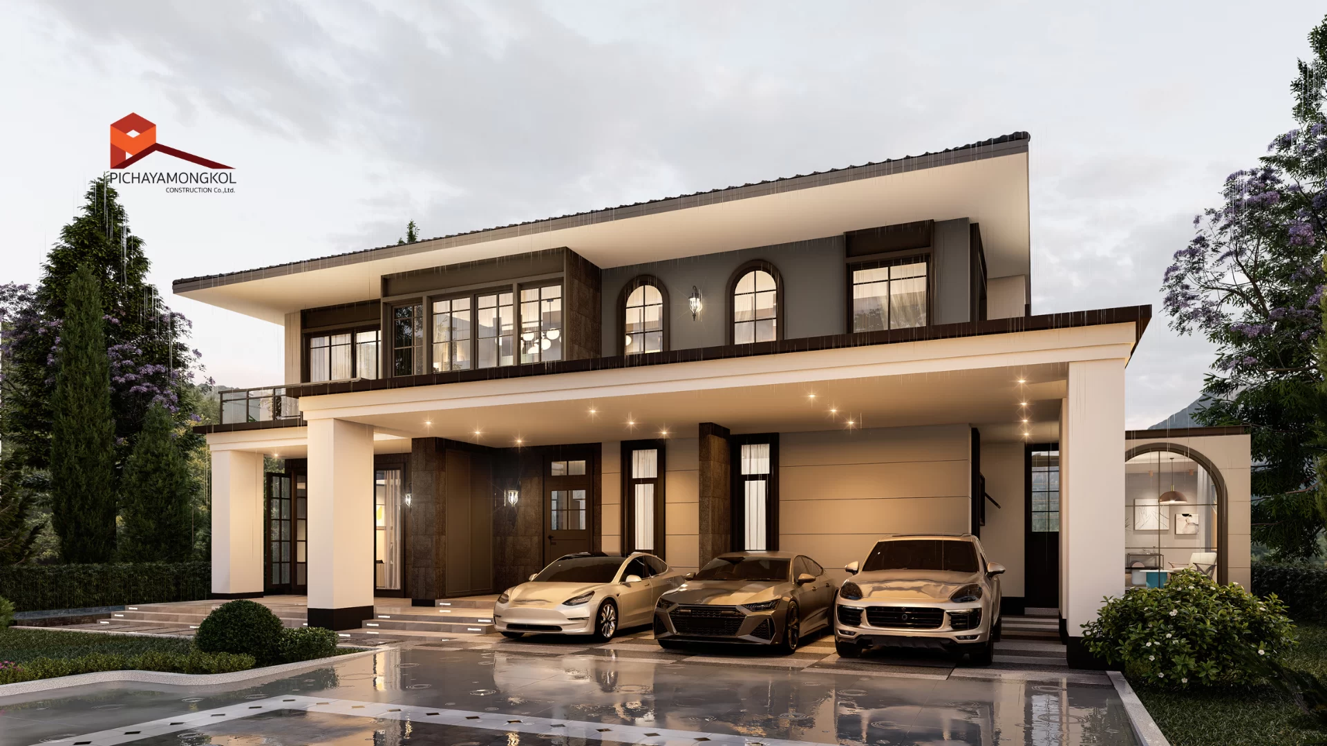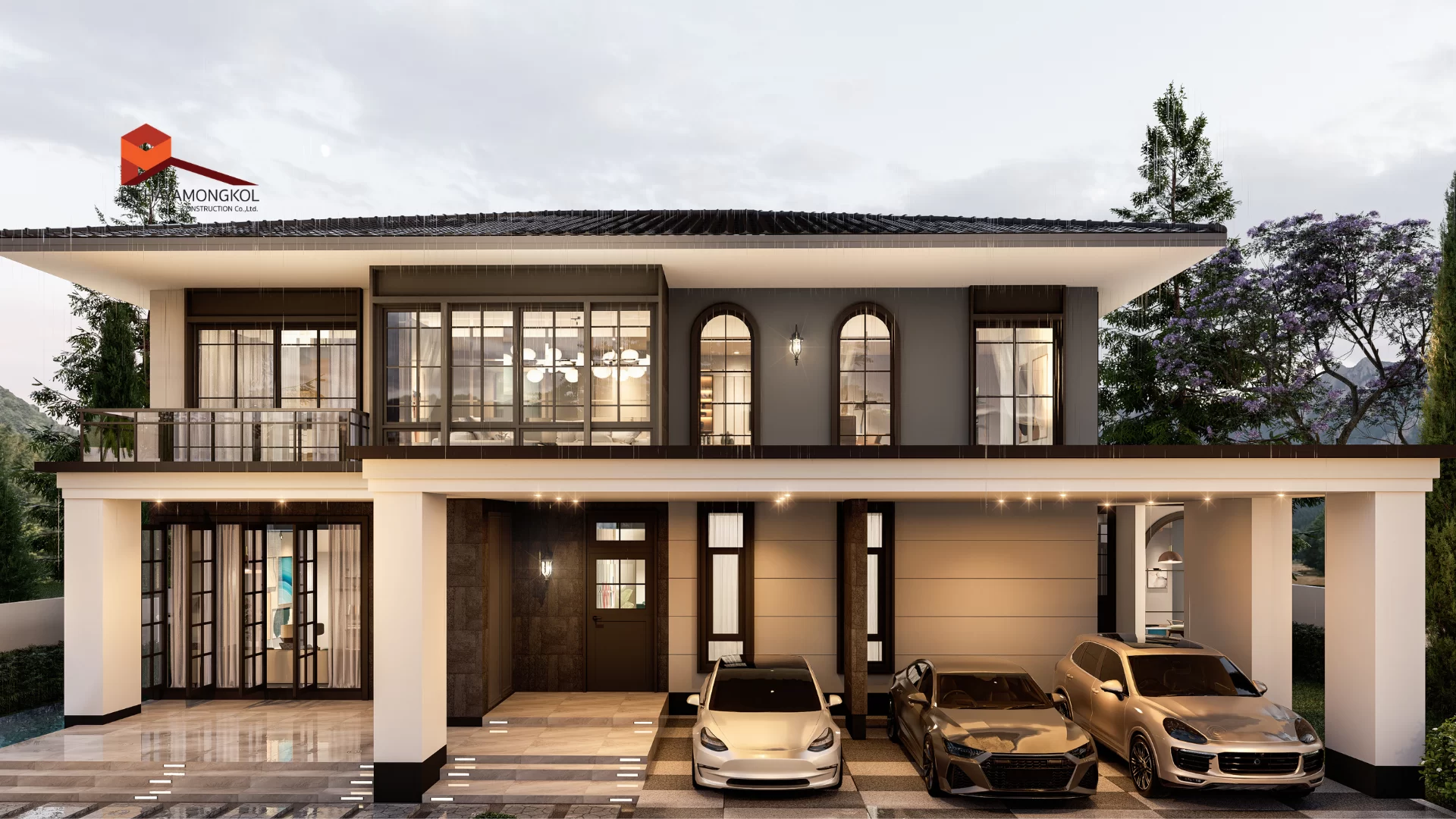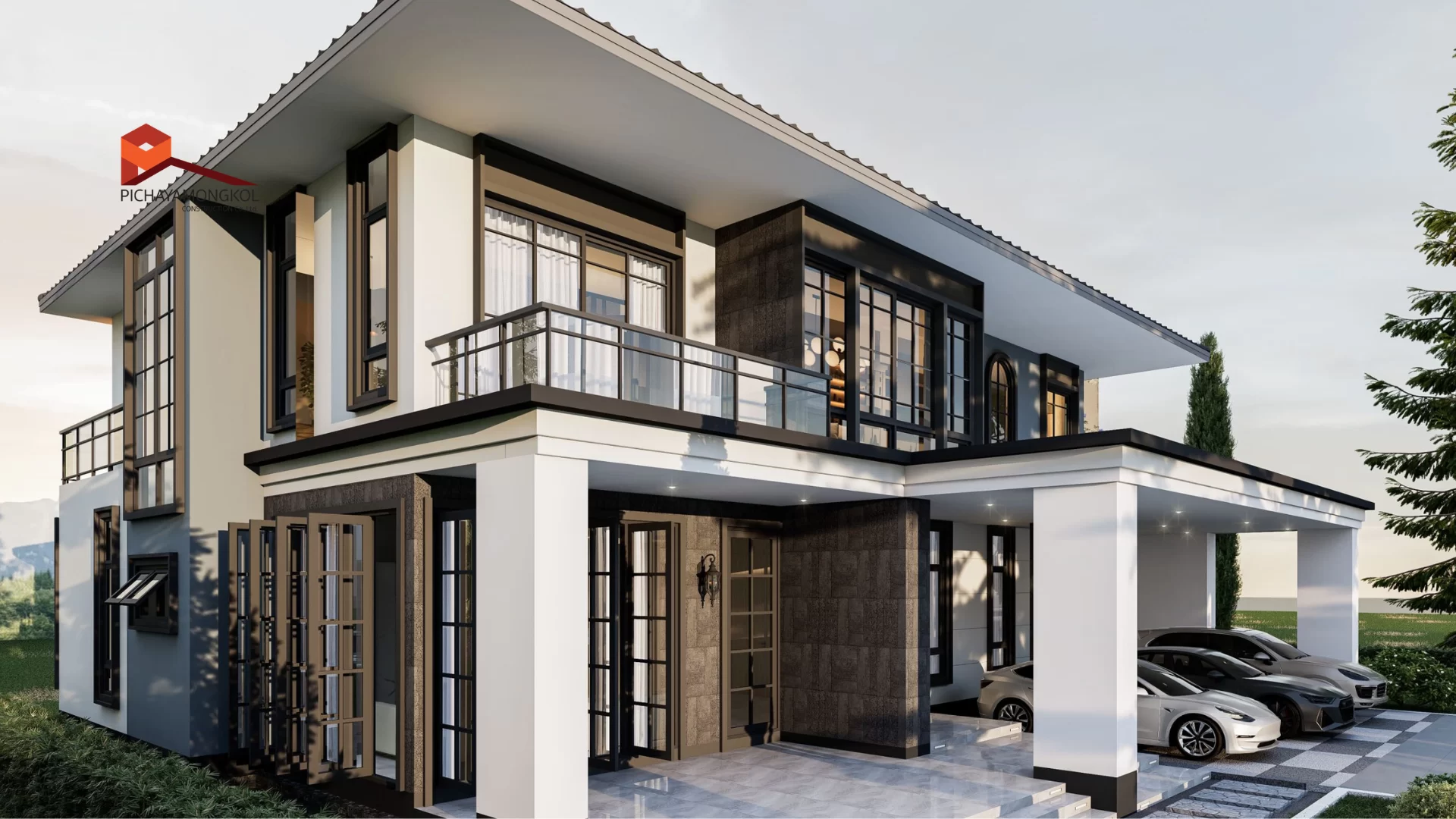 บ้านโมเดิร์น คอนเท็มโพรารี่ 2 ชั้น ตอบโจทย์ครอบครัวขนาดกลาง ที่ต้องการความหรูหรา สมฐานะ โดดเด่นด้วยโถงทางเข้า ที่เปิดโล่งสูง ถึงชั้น 2 และระเบียงภายในชั้น 2 ตกแต่งด้วยกระจกเทมเปอร์ยาวตลาดแนว ให้ความีู้สึกเรียบ หรู อย่างแท้จริง