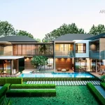 บ้านหรู สไตล์ Modern Luxury พร้อมบรรยากาศที่อบอุ่นในทุกพื้นที่ ตัวอาคารแวดล้อมไปด้วยสระว่ายน้ำ และสวนรอบตัวบ้าน เปิดมุมมองที่สบายตา ด้วยช่องเปิดขนาดใหญ่ ช่วยให้ดูโปร่งโล่ง