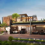 แบบบ้านสไตล์ modern tropical แนวคิดออกแบบที่มีอัตลักษณ์ผสมผสานความทันสมัยและธรรมชาติ ตอบโจทย์ครอบครัวขนาดใหญ่ด้วยพื้นที่ใช้สอยที่ออกแบบมาอย่างพิถีพิถัน การออกแบบมีการเลือกส่วนสีตัวอาคารโดยส่วนที่เน้นสร้างมิติให้อาคาร เราเลือกใช้สีเทคเจอร์และหินวีเนียร์โทนสีเทาและดำ ที่มีผิวสัมผัสเฉพาะตัว เพื่อเพิ่มความเข้มขรึมให้กับตัวอาคาร อีกทั้งยังเลือกใช้วัสดุตกแต่งตัวอาคารที่มีลวดลายคล้ายไม้ ที่เมื่อกระทบกับแสงแดดจะให้ความรู้สึกที่อบอุ่นและผ่อนคลาย รวมถึงการเลือกใช้ ( Facade ) เพื่อเพิ่มความน่าค้นหาให้กับตัวอาคาร เพื่อสะท้อนถึงการตกแต่งที่หรูหราภายในบ้าน ในส่วนของกระจกได้เลือกใช้กระจกที่สูงจรดเพดาน การแบ่งสัดส่วนภายใน มีความโปร่งสบายไม่อึดอัด แต่ยังคงมีความเป็นส่วนตัวของผู้อยู่อาศัย ฟังก์ชันการใช้สอยภายในบ้านที่มีทั้งพื้นที่ส่วนตัวและส่วนกลาง ประกอบด้วย 7 ห้องนอน 8 ห้องน้ำ 4 ห้องอเนกประสงค์ 1 สระว่ายน้ำ และ ระเบียงขนาดใหญ่ บริเวณชั้น 2 ที่รองรับกิจกรรมต่าง ๆ ได้อย่างหลากหลาย เหมาะกับการทำกิจกรรมภายในครอบครัวหรือจะชวนเพื่อน ๆ มาสังสรรค์ในช่วงเทศกาลต่าง ๆ บ้านหลังนี้จึงตอบโจทย์ความต้องการของสมาชิกในครอบครัวทุกช่วงวัย