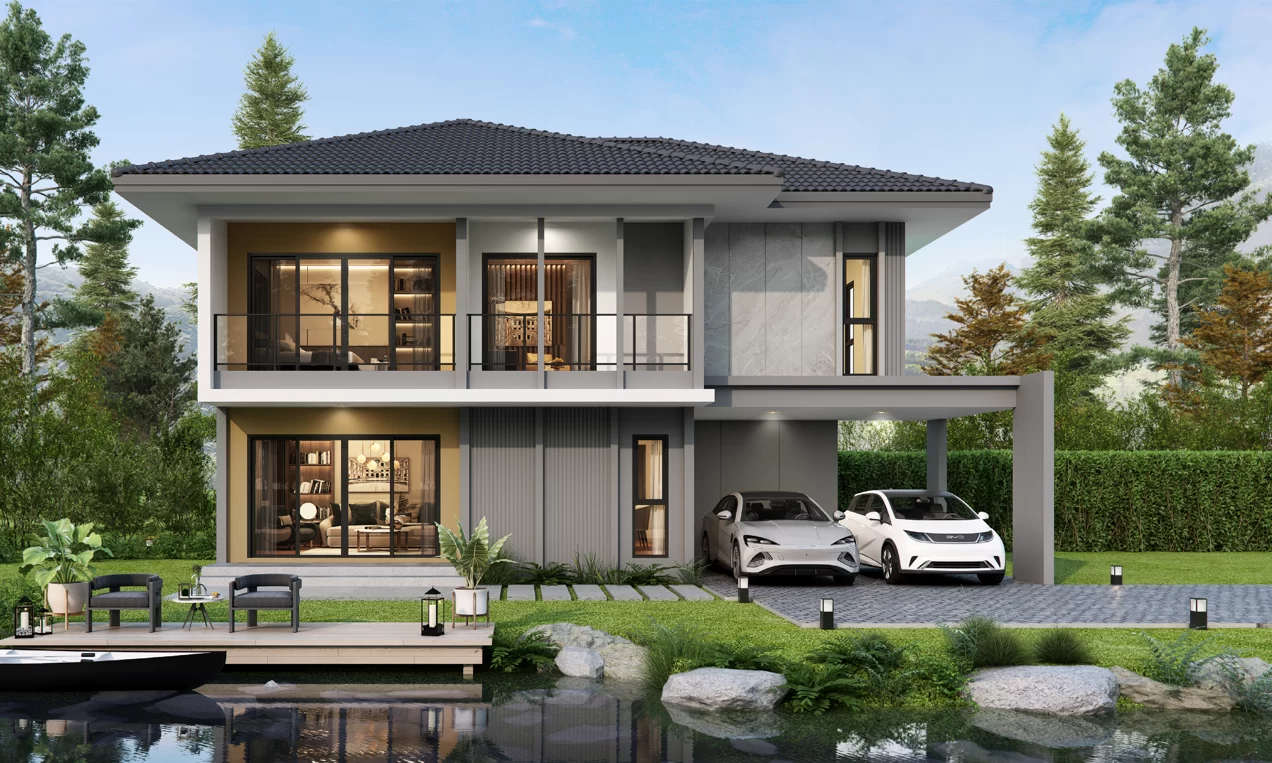 บ้านสวย Modern Minimal Tropical Style สำหรับครอบครัวคน New Gen ที่ชื่นชอบแบบบ้านที่เต็มไปด้วยกลิ่นอายสถาปัตยกรรมเขตร้อน อบอุ่น อยู่สบาย จากการออกแบบที่ใส่ใจทุกรายละเอียด ทำให้ได้บ้านที่โปร่งโล่ง หรูหรา เหมาะสำหรับการชมวิวภายนอก