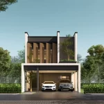 เป็นบ้านพักอาศัย 2 ชั้น สไตล์ Modern tropical ที่ผสมผสานความอบอุ่นของงานไม้และความโปร่งโล่งแบบสมัยใหม่ได้อย่างลงตัว ดีไซน์ทันสมัย ตอบโจทย์ครอบครัวยุคใหม่ที่ชอบความเรียบหรู เน้นฟังก์ชันการใช้งานที่ครบครันและการจัดวางทิศทางแสง-ลมที่ยอดเยี่ยม