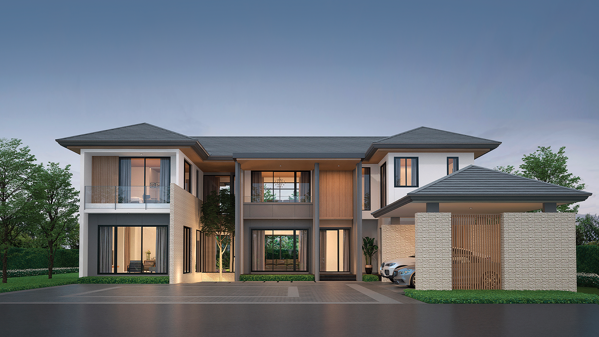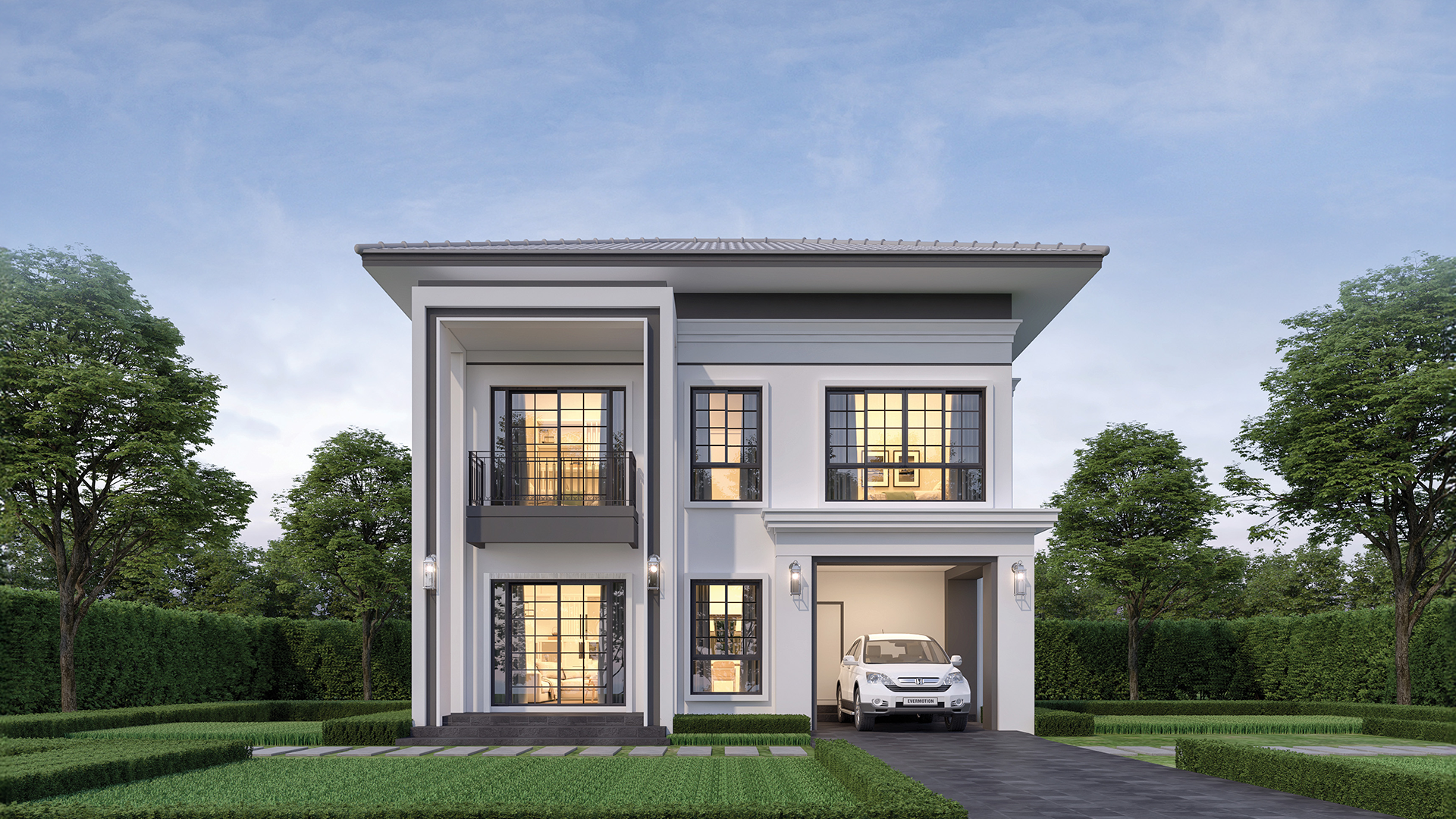 บ้านสีขาวสไตล์ English Family House หลังนี้โดดเด่นด้วยเส้นสายเรียบง่ายที่แฝงความอบอุ่น ใช้โทนสีอ่อนและหลังคาทรงจั่วให้ความรู้สึกโปร่ง โล่ง และมีเอกลักษณ์ พื้นที่ภายในเน้นการเปิดรับแสงธรรมชาติด้วยกระจกบานใหญ่เชื่อมต่อวิวสวนภายนอกอย่างลงตัว พร้อมระเบียงและเฉลียงที่ออกแบบสำหรับการพักผ่อนกลางแจ้ง เหมาะสำหรับครอบครัวที่ชื่นชอบบรรยากาศสบาย ๆ แบบรีสอร์ท แต่ยังคงความทันสมัยและฟังก์ชันครบถ้วนสำหรับการใช้ชีวิตจริงในทุกวัน