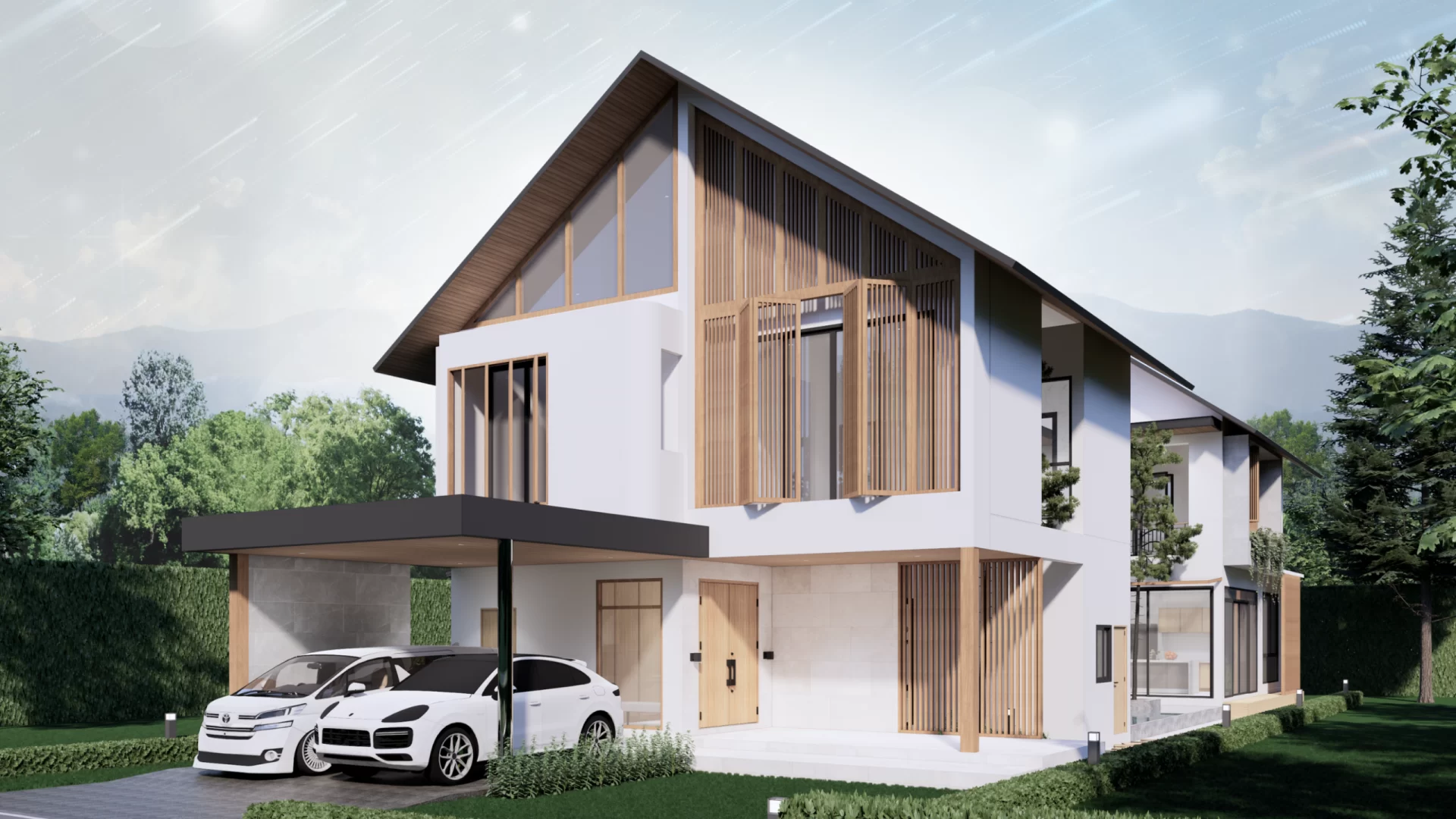 Terra Nova บ้านสองชั้นสไตล์โมเดิร์นทรอปิคอล (Modern Tropical) จากซีรีส์ ORBITA ที่ออกแบบมาเพื่อผสานชีวิตเข้ากับธรรมชาติอย่างกลมกลืน ด้วยรูปทรงหลังคาจั่วคลาสสิกและวัสดุไม้ที่ให้ความอบอุ่น ภายในโปร่งโล่ง รับแสงธรรมชาติได้ตลอดวัน พร้อมพื้นที่สวนและสระน้ำประดับใจกลางบ้าน ให้คุณได้พักผ่อนในทุกมุมของชีวิต