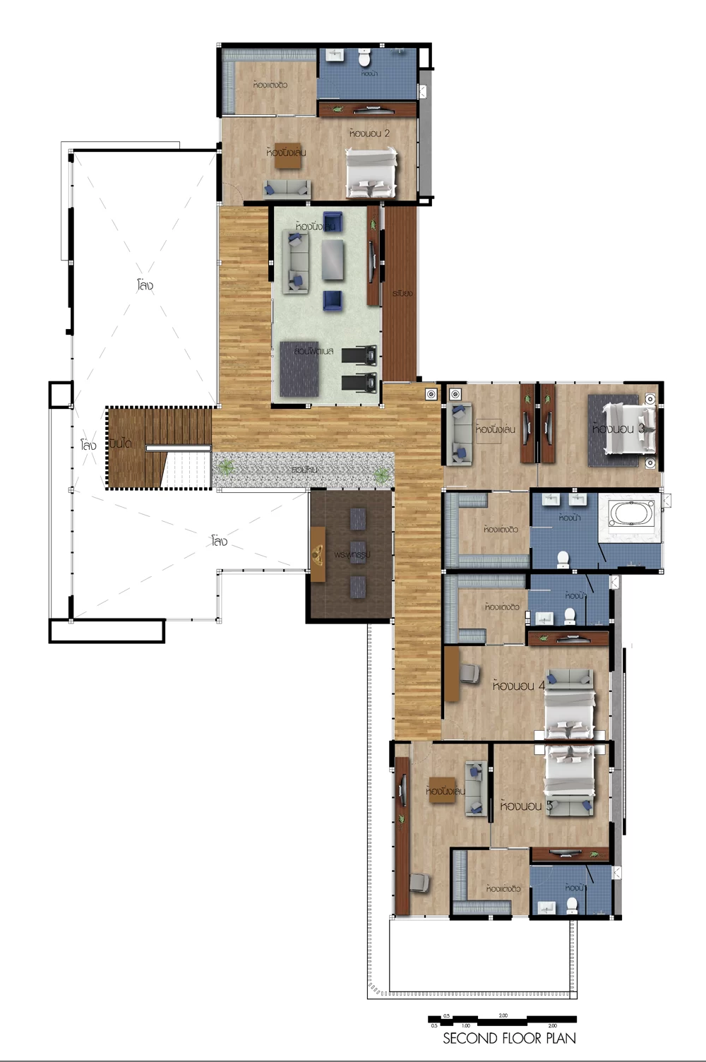 เป็นบ้านพักอาศัย 2 ชั้น สไตล์ Modern tropical ที่ผสมผสานความอบอุ่นของงานไม้และความโปร่งโล่งแบบสมัยใหม่ได้อย่างลงตัว ดีไซน์ทันสมัย ตอบโจทย์ครอบครัวยุคใหม่ที่ชอบความเรียบหรู เน้นฟังก์ชันการใช้งานที่ครบครันและการจัดวางทิศทางแสง-ลมที่ยอดเยี่ยม