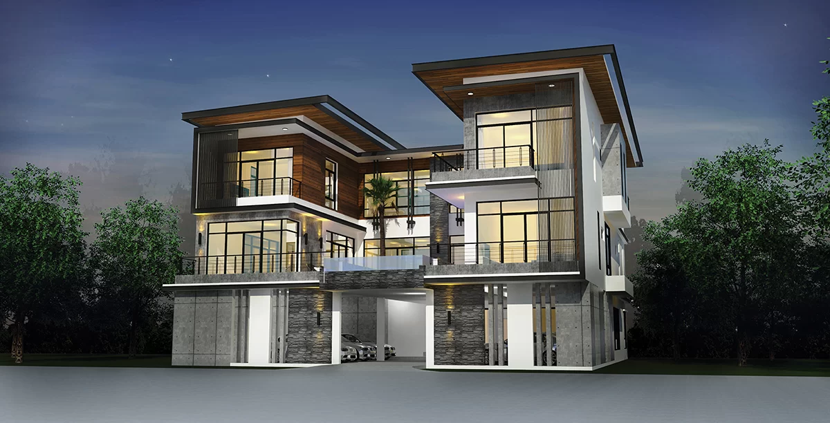เป็นบ้านพักอาศัย 2 ชั้น สไตล์ Modern tropical ที่ผสมผสานความอบอุ่นของงานไม้และความโปร่งโล่งแบบสมัยใหม่ได้อย่างลงตัว ดีไซน์ทันสมัย ตอบโจทย์ครอบครัวยุคใหม่ที่ชอบความเรียบหรู เน้นฟังก์ชันการใช้งานที่ครบครันและการจัดวางทิศทางแสง-ลมที่ยอดเยี่ยม