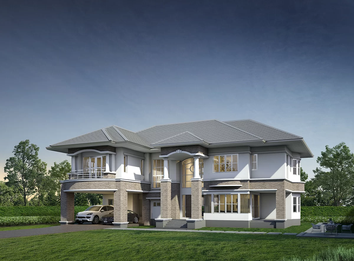 บ้านสไตล์โมเดิร์นคลาสสิก ดีไซน์ที่ดูวิจิตรบรรจง มีเอกลักษณ์ที่หรูหรา เป็นบ้านมี พื้นที่ใช้สอยมากถึง 505 ตารางเมตร ฟังก์ชั่นใช้สอยครบครัน ภายในชั้นล่างโออ่า ส่วนโถงด้านหน้า โล่งถึงชั้นบน ห้องรับแขก ห้องพักผ่อน แยกพื้นที่เป็นสัดส่วน ห้อง ทำงานที่สามารถปรับเป็นห้องนอนล่างได้ ชั้นมี 4 ห้องนอน พร้อมพื้นที่พักผ่อน ส่วนกลางที่โปร่ง สบาย