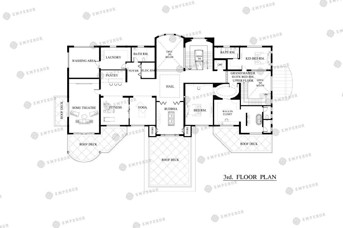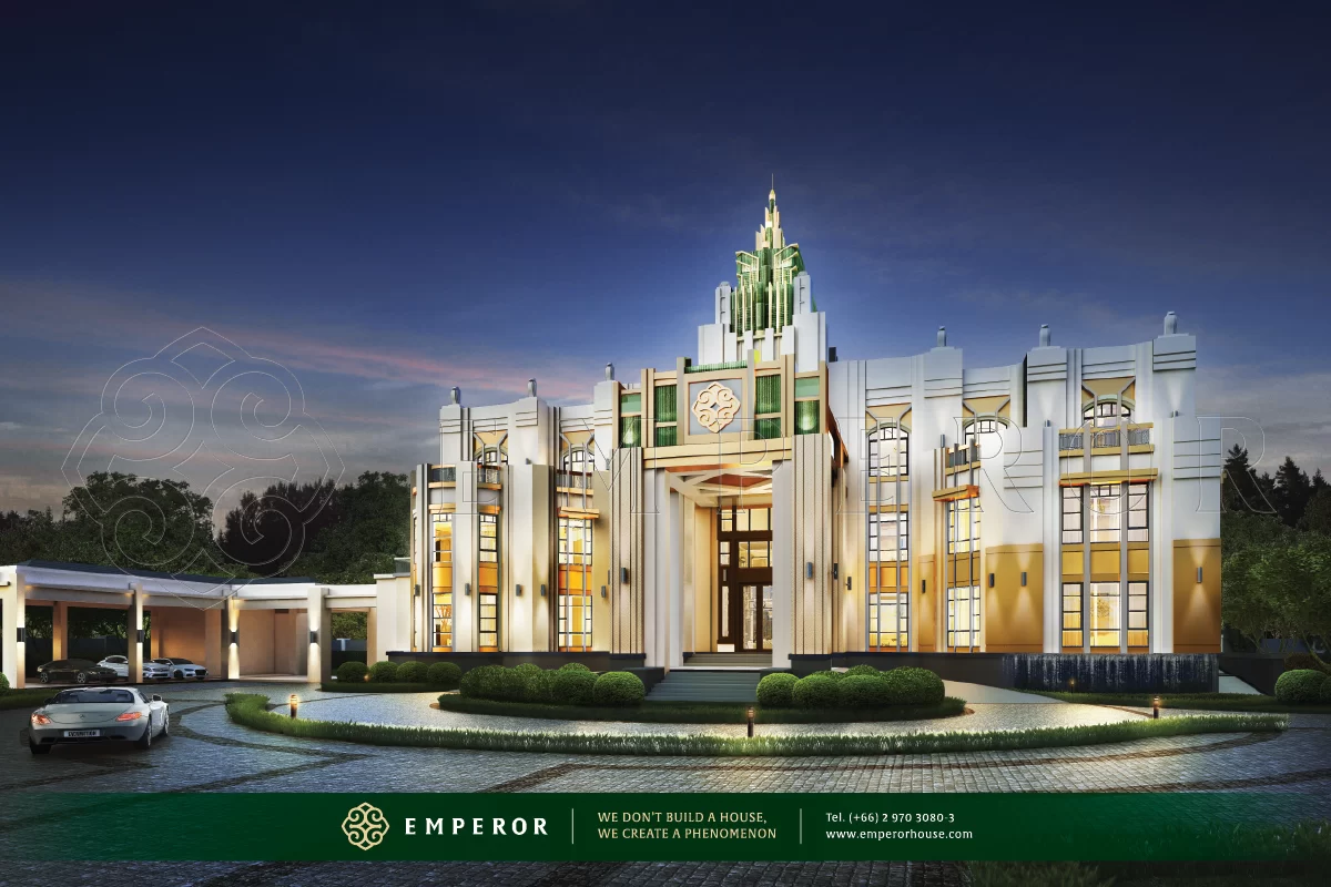 บ้าน 3 ชั้น ในสไตล์รูปแบบ Art Deco ที่มีความทันสมัย เรียบหรู สง่างามอย่างมีรสนิยม รูปแบบของบ้านเหมาะสมสำหรับครอบครัวใหญ่ที่ตอบโจทย์การใช้งานของผู้อยู่อาศัยทุกเพศ ทุกวัย ภายในตัวบ้าน ส่วนของห้อง Master ถูกออกแบบให้เป็นรูปแบบ Home in Home ที่มีฟังก์ชั่นการใช้งานอยู่ภายในอย่างครบครัน เช่น ส่วนเตรียมอาหารและทานอาหาร, ห้องนั่งเล่นที่มีโถงโล่งโปร่ง Double Space และ 2 ห้องนอน ในส่วนของชั้น 3 ประกอบไปด้วยบริเวณเพื่อการพักผ่อนเช่นห้องโฮมเธียร์เตอร์, ห้องฟิตเนส, ห้องโยคะ และมินิบาร์