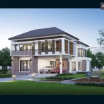บ้านสไตล์ Modern Luxury ที่มีเอกลักษณ์ในการออกแบบให้ดูเรียบหรู สบายตา เหมาะสำหรับครอบครัวขนาดใหญ่ ภายในออกแบบให้มีพื้นที่ Double space ขนาดใหญ่ ทำให้รู้สึกโปร่ง โล่ง เป็นหัวใจหลักของตัวบ้าน ชั้น 2 ออกแบบให้มี Speac ที่มีความน่าสนใจ คล้ายกับสะพานทางเดินเชื่อมไปยังฟังก์ชันต่างๆ และมาพร้อมพื้นที่ใช้สอยครบครัน รองรับกิจกรรมต่างๆ ของครอบครัวได้อย่างลงตัว