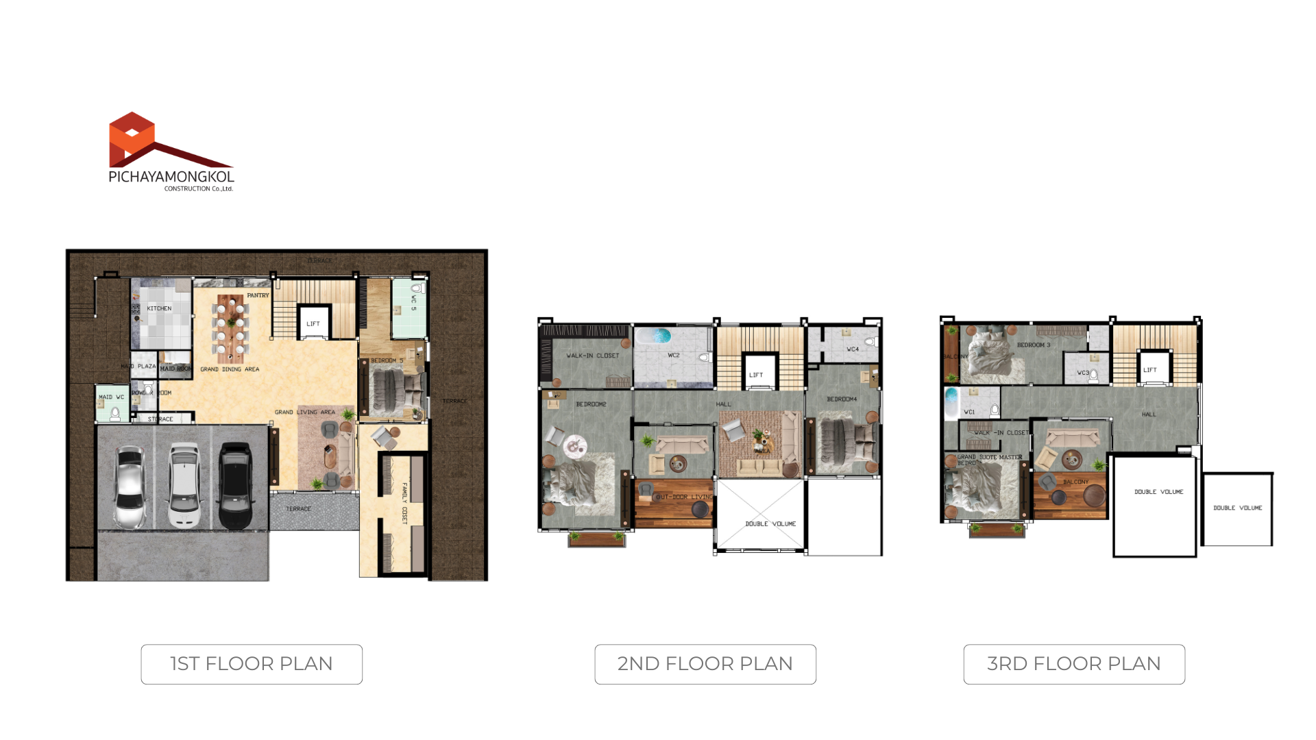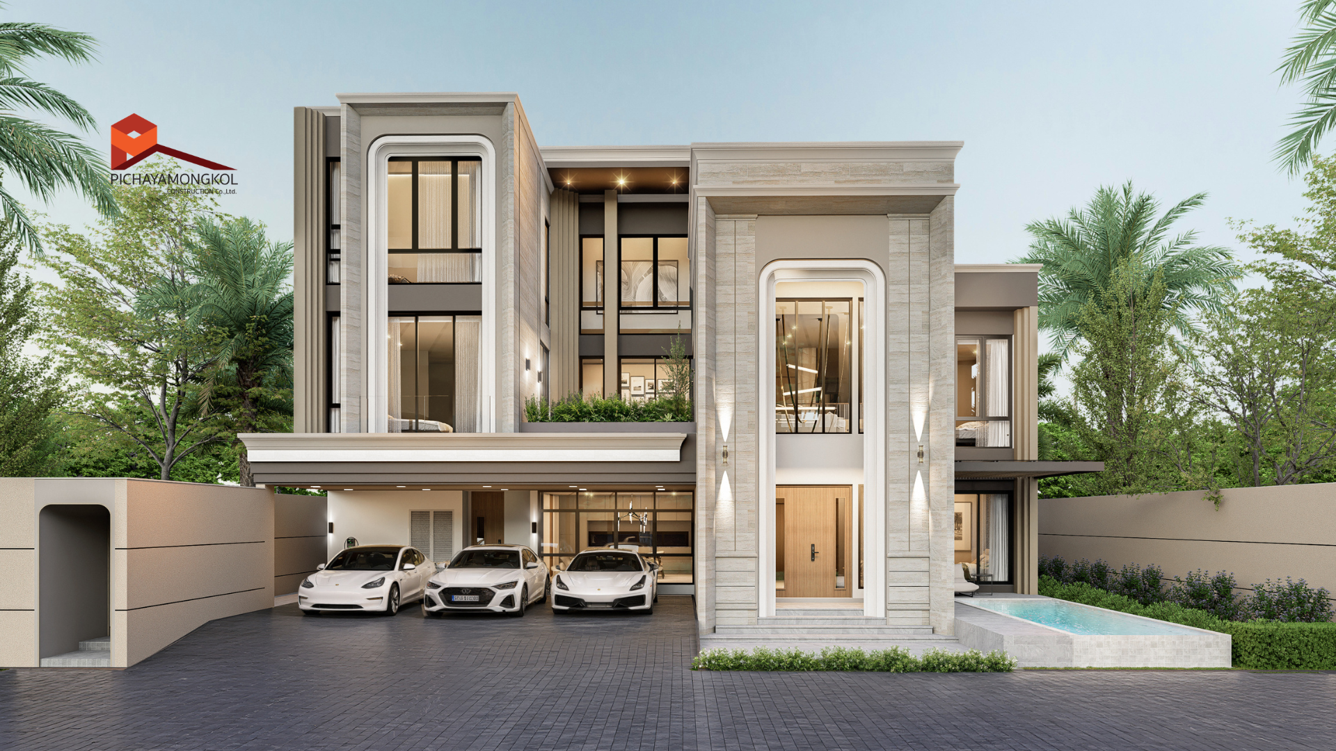 แบบบ้าน 3 ชั้น ที่มีการดีไซน์รูปลักษณ์ในสไตล์ Modern Retro ในคอนเซ็ปต์บ้านขนาดใหญ่บนพื้นที่จำกัด เหมาะกับไลฟ์สไตล์ของคนเมือง โดยผสมผสานเข้ากับความทันสมัยอย่างลงตัว ตัวบ้านเน้นโทนสี Earth Tone เคร่งขรึมและอบอุ่น ตกแต่งโดยรอบด้วยระแนงไม้และออกแบบให้มีการระบายอากาศและเปิดรับแสงธรรมชาติได้จากทุกส่วนของมุมบ้าน โซนนั่งเล่นออกแบบให้มี Double Volume ประดับด้วยกระจกบานใหญ่ ช่วยให้มีความโปร่ง โล่งสบาย พื้นที่ชั้นบนออกแบบพื้นที่ของการพักผ่อนไว้อย่างเป็นสัดส่วนและยังสามารถปรับเปลี่ยนฟังก์ชันของการใช้งานได้ตามที่ต้องการ