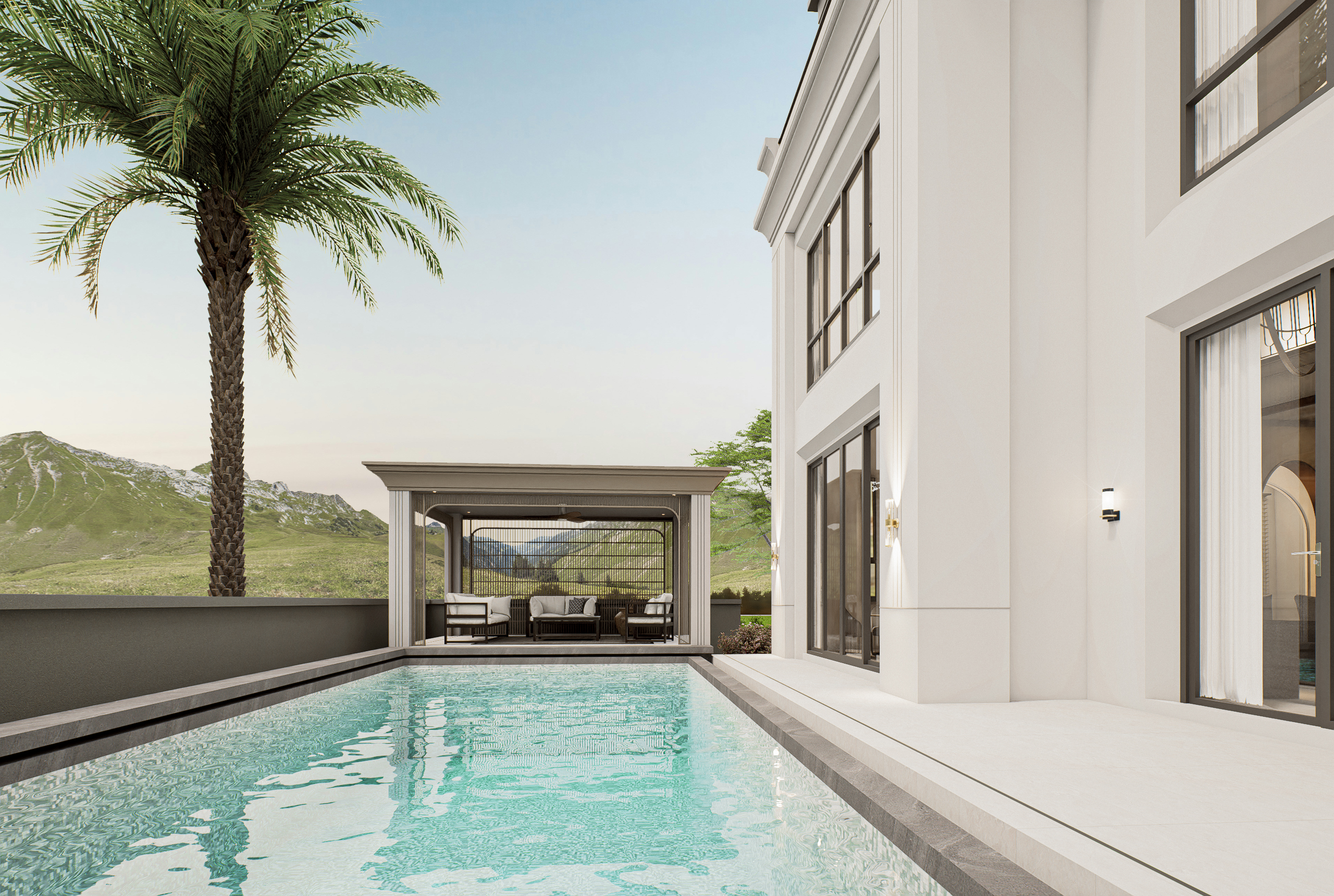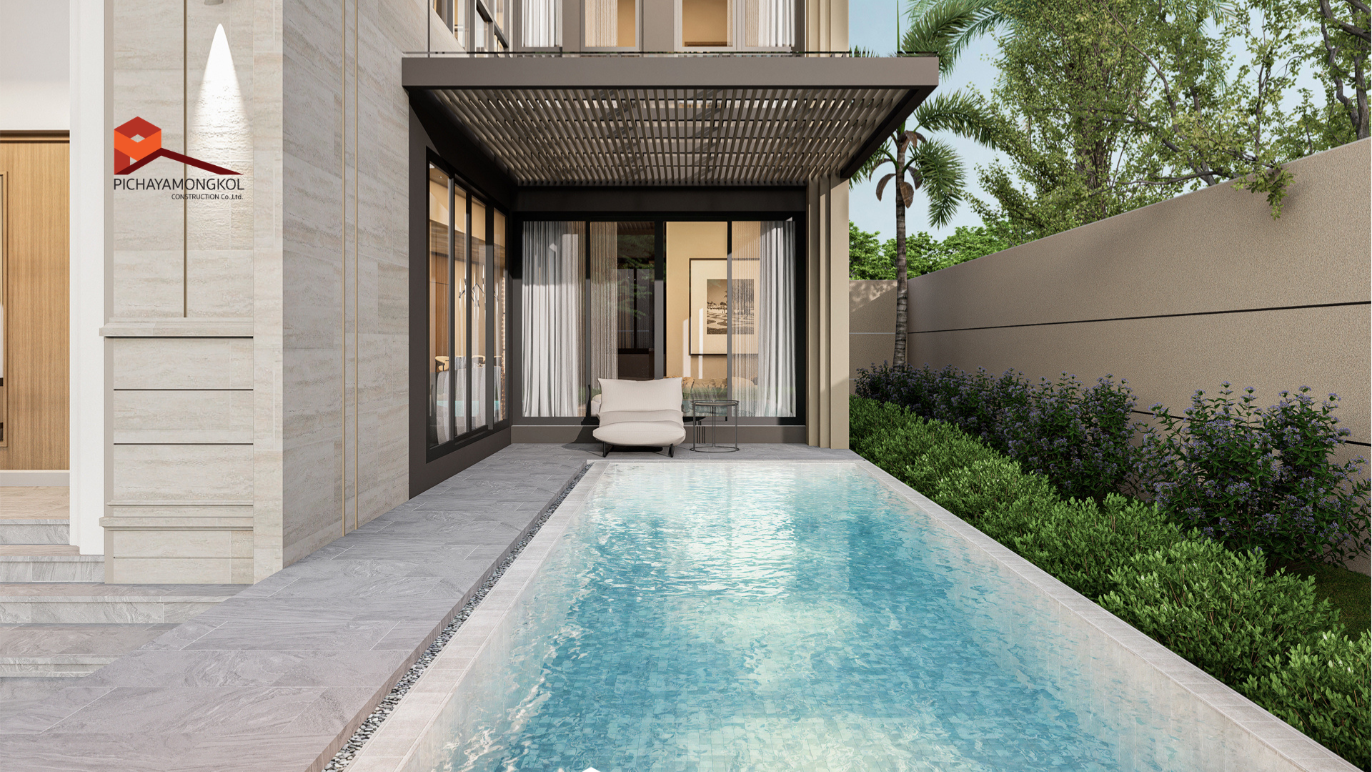 บ้านสีขาวสไตล์ English Family House หลังนี้โดดเด่นด้วยเส้นสายเรียบง่ายที่แฝงความอบอุ่น ใช้โทนสีอ่อนและหลังคาทรงจั่วให้ความรู้สึกโปร่ง โล่ง และมีเอกลักษณ์ พื้นที่ภายในเน้นการเปิดรับแสงธรรมชาติด้วยกระจกบานใหญ่เชื่อมต่อวิวสวนภายนอกอย่างลงตัว พร้อมระเบียงและเฉลียงที่ออกแบบสำหรับการพักผ่อนกลางแจ้ง เหมาะสำหรับครอบครัวที่ชื่นชอบบรรยากาศสบาย ๆ แบบรีสอร์ท แต่ยังคงความทันสมัยและฟังก์ชันครบถ้วนสำหรับการใช้ชีวิตจริงในทุกวัน