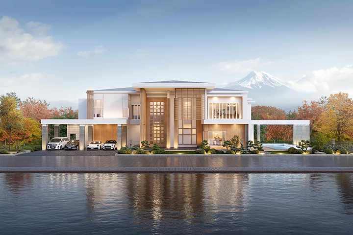 แบบบ้าน 2 ชั้น สไตล์ modern contemporary japanese-zen แนวคิดและวัฒนธรรมของชาวญี่ปุ่นได้หลั่งไหลเข้ามาในสังคมไทย ผ่านทางเครื่องใช้อุปโภค บริโภคจนกลายเป็นความสนใจของคนรุ่นใหม่ในปัจจุบัน บ้านหลังนี้จึงถูกออกแบบมาเพื่อกระตุ้น REACTIVE SENCE EXPERIENCE ให้เกิดเป็นรูปธรรม ผ่านฟังก์ชั่นการใช้งานตั้งแต่ก้าวเท้าเข้ามาในบ้าน โดยการนำไลฟ์สไตล์ กลิ่นอายของญี่ปุ่นมาผสมผสานในการออกแบบและจัดฟังก์ชันภายในไว้อย่างน่าสนใจ อาทิ การออกแบบให้มี Japanese Foyer แบบลดระดับที่มี Double volume มีห้อง Powder room สำหรับจัดเก็บ Accessory ทั้งตอนเข้าและออกจากบ้าน ฯลฯ และที่สำคัญบ้านหลังนี้ยังคงเน้นตอบโจทย์การใช้งานได้อย่างหลากหลายรูปแบบการใช้ชีวิต และหลากหลายกิจกรรม โดยแบ่งพื้นที่ของการพักผ่อน การออกกำลังกาย ตลอดจนช่วงเวลาของการ Party ไว้แบบไม่มีตกหล่นภายในบ้านหลังเดียว