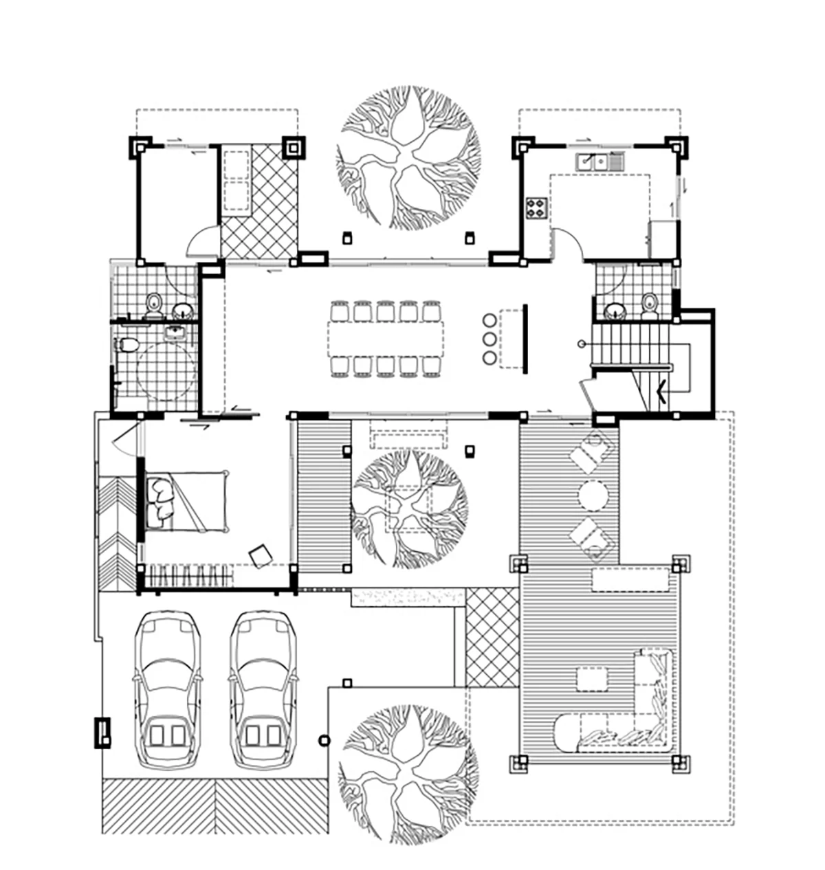 ตัวบ้านถูกออกแบบในสไตล์ Modern Contemporary ที่เน้นความทันสมัย เรียบง่าย เพิ่มมิติที่น่าสนใจด้วยระแนงไม้เลื่อน ช่วยบดบังสายตาจากผู้คนภายนอกเน้นให้ความสำคัญกับพื้นที่ส่วนตัวของครอบครัว เหมาะกับครอบครัวขนาดใหญ่